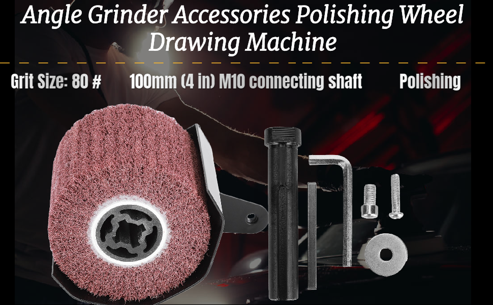 PACKAGE LIST: 1 x Angle grinder accessories; 1 x Polishing wheel; 1 x Handle; 2 x Screw; 1 x Hex wrench; 2 x Iron shaft; 1 x Screw pad; 1 x Angle grinder adapter.