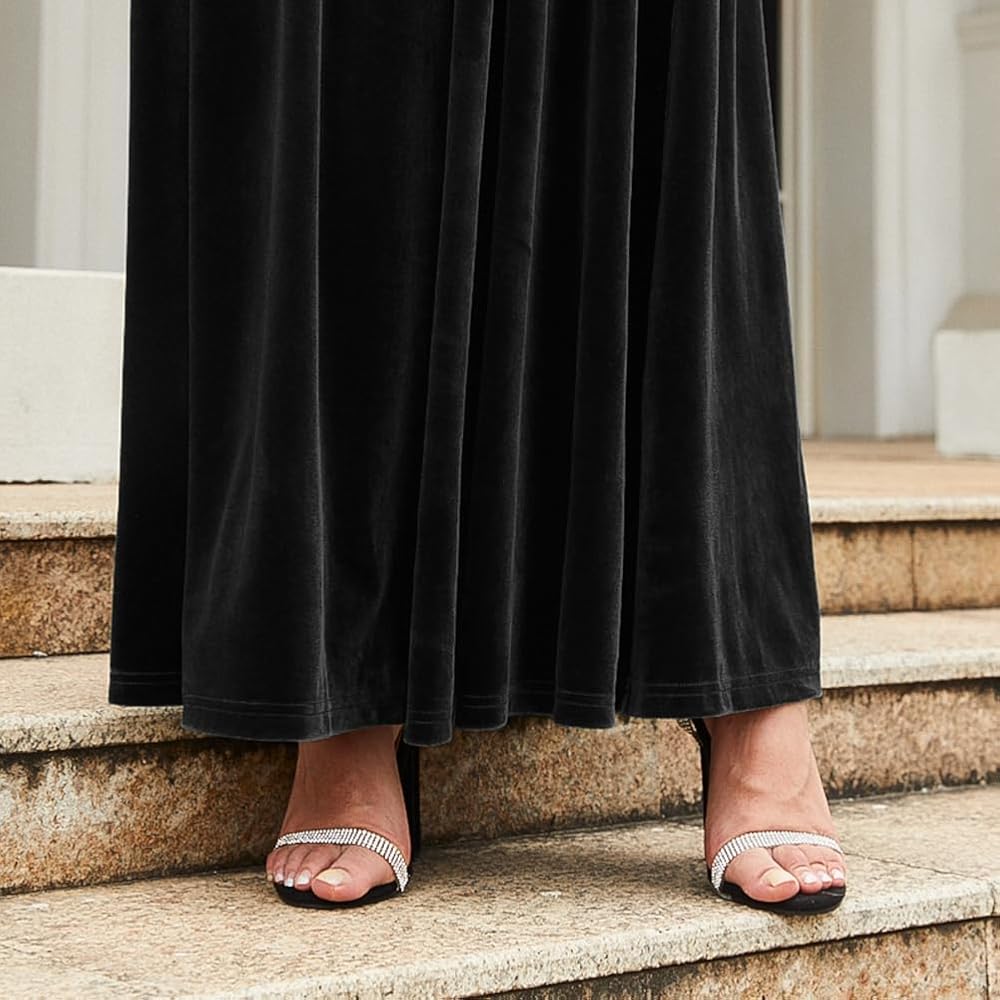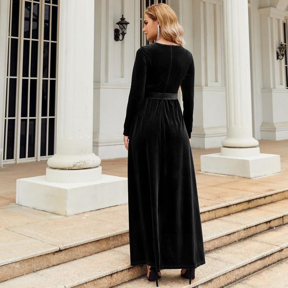 Timeless Solid Elegance: Solid colors are renowned for their timeless and versatile appeal, You'll never have to worry about it going out of style. The A-line silhouette of this long maxi dress enhances your grace and charm, especially when you walk gracefully in it. cocktail party dress for women, fall long sleeve dress for women, formal dresses for women, Christmas dresses for women, formal evening dress, winter wedding guest dresses elegant velvet dress mother of the bride dress for women.