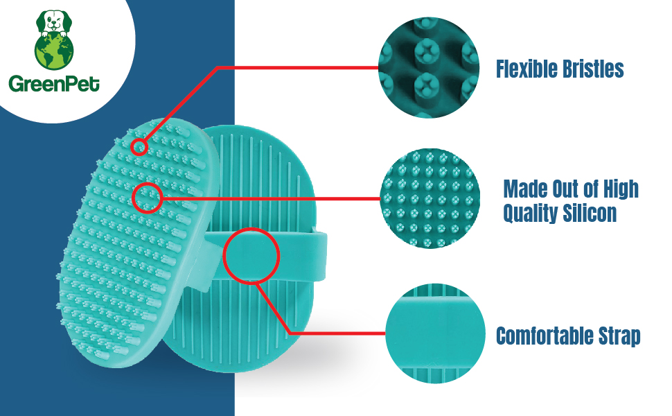 Dog Bath Brush: This scrubber features soft silicone bristles with split end design that eliminate excessive tugging, instantly attracting dust and loose fur away from your pet's coat. The split ends enhance the penetration of the shampoo all the way to the hair root for a deeper clean.