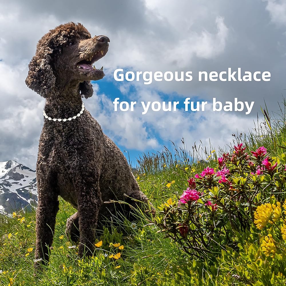 This female dog necklace is made with high-quality glass pearls, and as a classic pearl dog necklace, it is lightweight and comfortable, it won't burden your girl and puppy dog at all!
