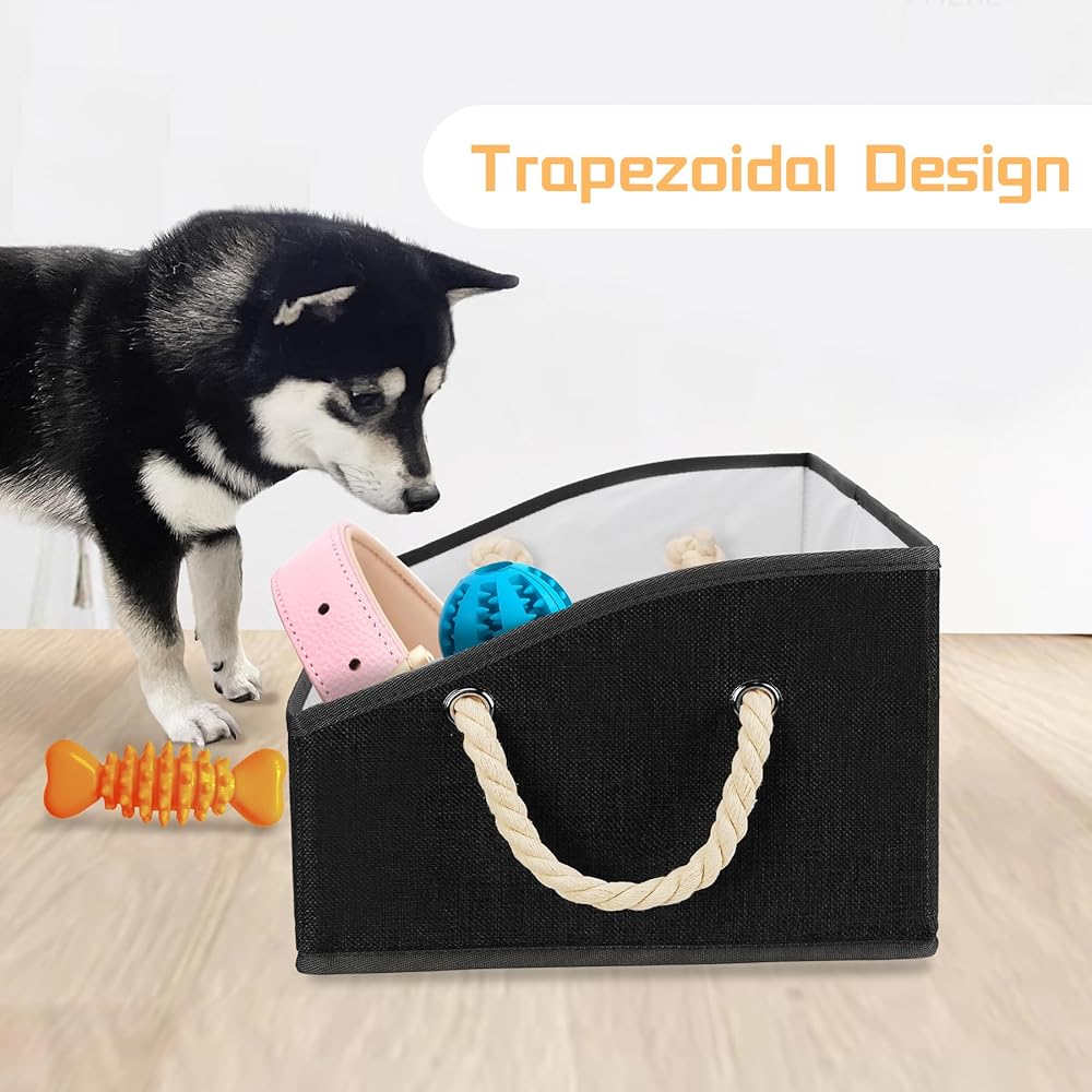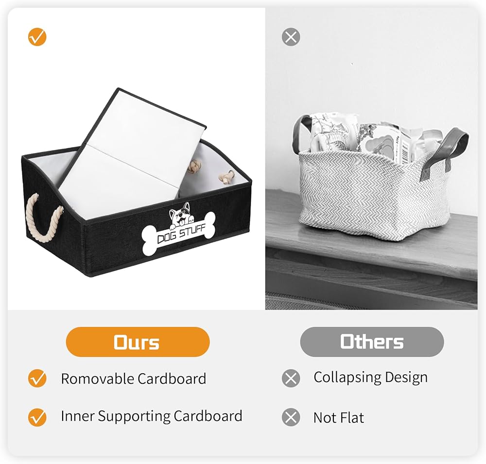 🐕Premium Quality: The dog toy bin is made of canvas with movable cardboard at the bottom, which is durable, stable, and firm. Sturdy thickened weave ropes can provide soft gripping and are easy to move even with a heavy load.