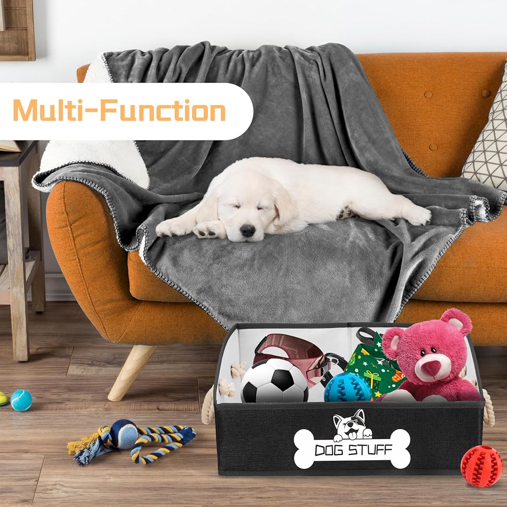 🐕Large Capacity: The dog toy box has a size of 19.5 (L) x 11 (W) x 8.5 (H) inches, which has a large space for many of your pet's accessories and keeps your room clean and clutter free. It can easily hold a blanket, dog collar, dog food and etc.