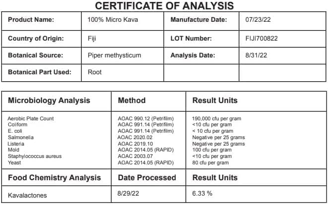 This kava product has been specially processed to remove the coarse fibers found in normal kava powders. This creates an easy kava break on the go. Simply stir 2-4 teaspoons into any beverage and enjoy some Island Relaxation. No mess, no prep, quick kava. This is the mild kava with 6-8% kavalactones. if you are looking for stronger kava please try our other Micronized Fijian kava with 12.33% Kavalactones.