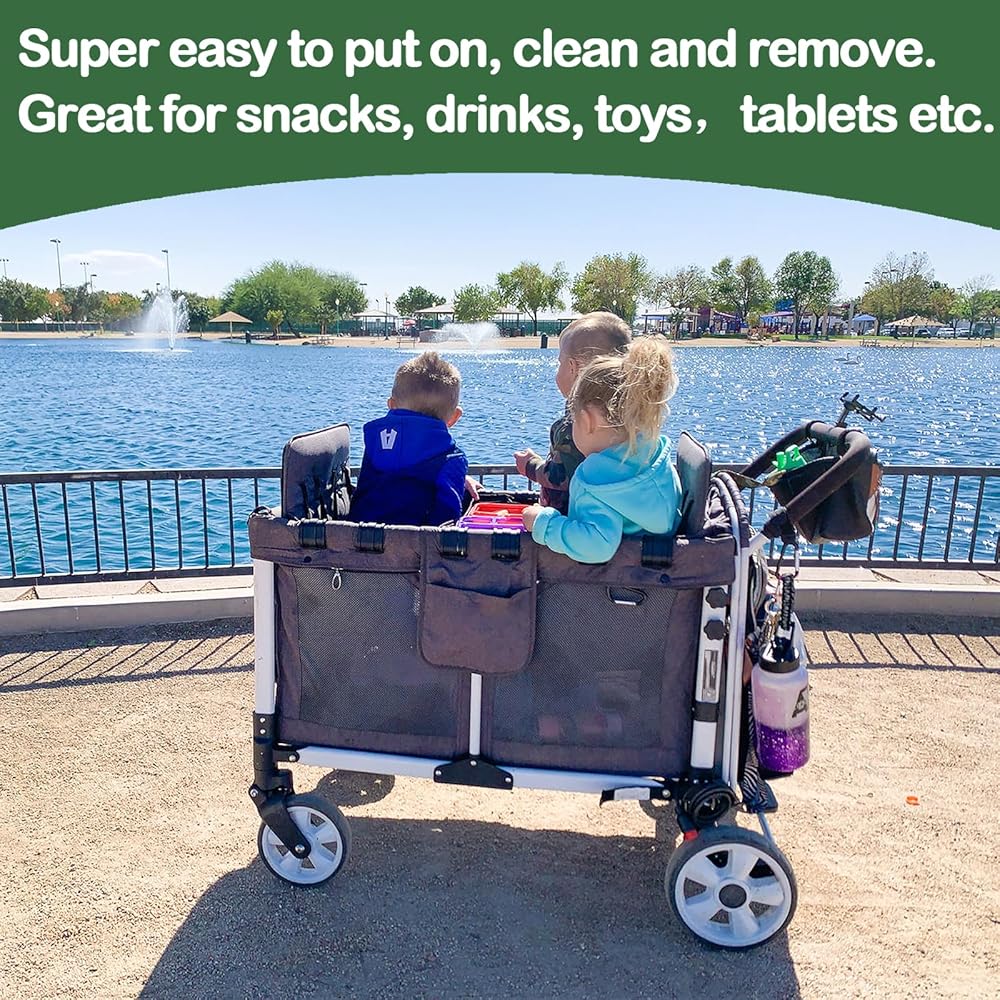 Necessary Accessories for Wagon : This tray is perfect for snacks, drinks, toys, tablets, etc.It also serves as the perfect kick blocker when the kids are being feisty.Must have if you already own a wagon.