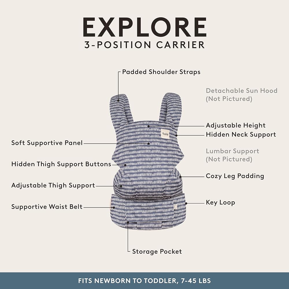 كل وضعية حمل سيحتاج إليها طفلك، بما في ذلك الوجه للخارج: أوضاع متعددة لحمل الطفل بما في ذلك الوجه الأمامي للخارج*، والوجه للداخل، والحمل الخلفي. يوفر كل وضع وضعًا طبيعيًا ومريحًا للحمل المريح الذي يعزز النمو الصحي للورك والعمود الفقري للطفل.