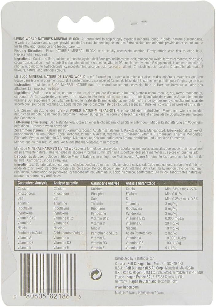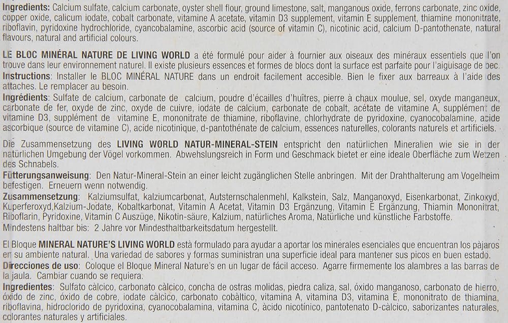 The Living World Mineral Block, Orange Design, is a convenient and easy way to provide essential minerals and vitamins to your bird. It promotes a trim and sharp beak and can be left in your bird's cage at all times. It is the perfect way to help provide your bird with a healthy lifestyle.