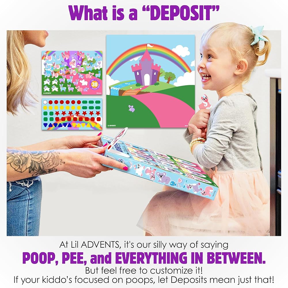 POSITIVE REINFORCEMENT: This toilet training advent game utilizes the design elements of an advent calendar and a potty training chart. Now your Lil One is instantly rewarded with stickers & hidden wood blocks to encourage successful Deposits.