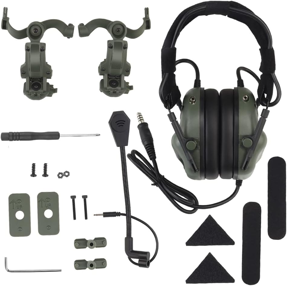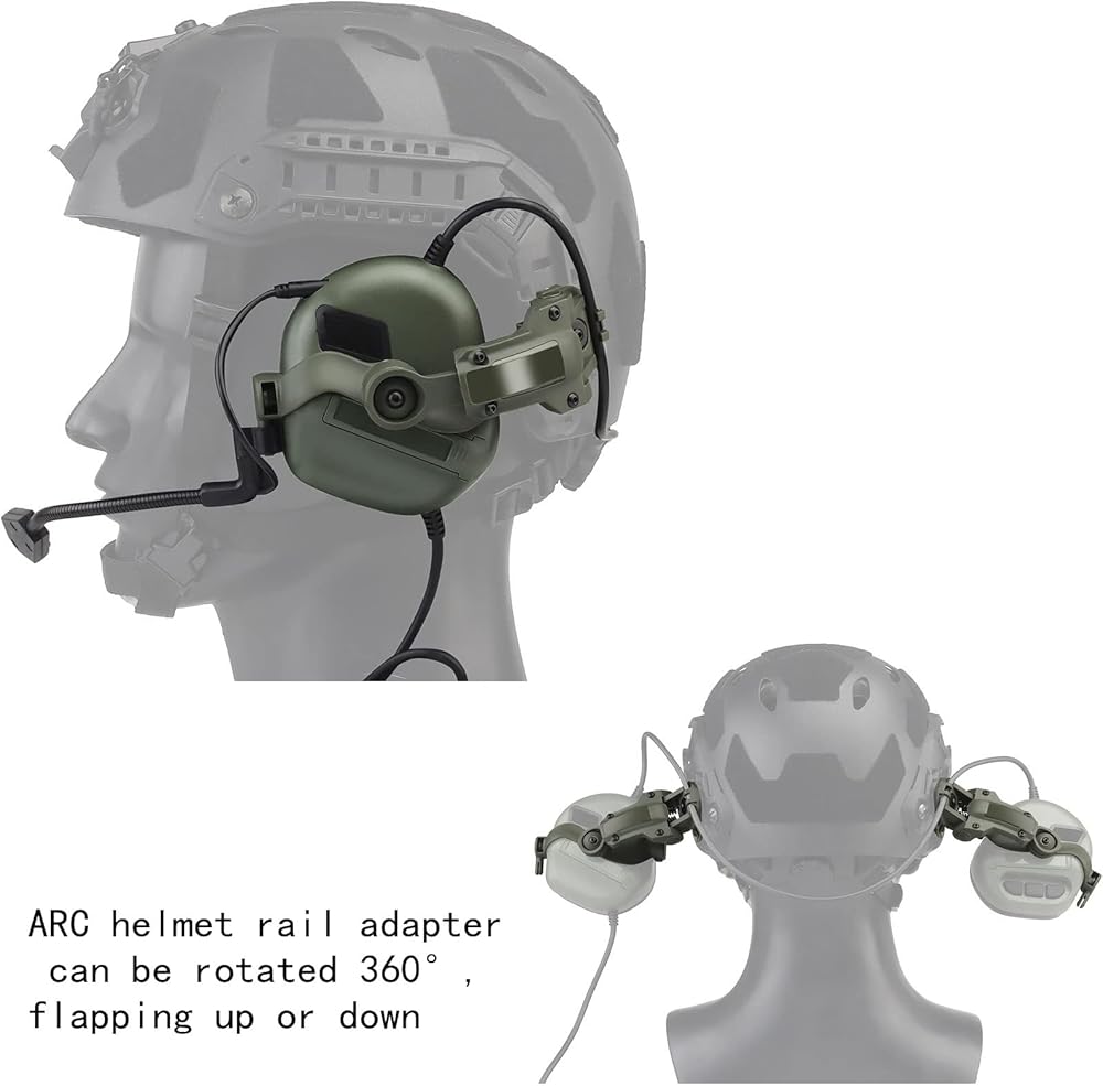 Helmet-Type Tactical Headset + with U94 PTT 2pin with ARC Rail Adapter Compatible Ops-Core Fast Helmet ACH Helmet MICH Helmet for Airsoft Hunting Shooting (Green)