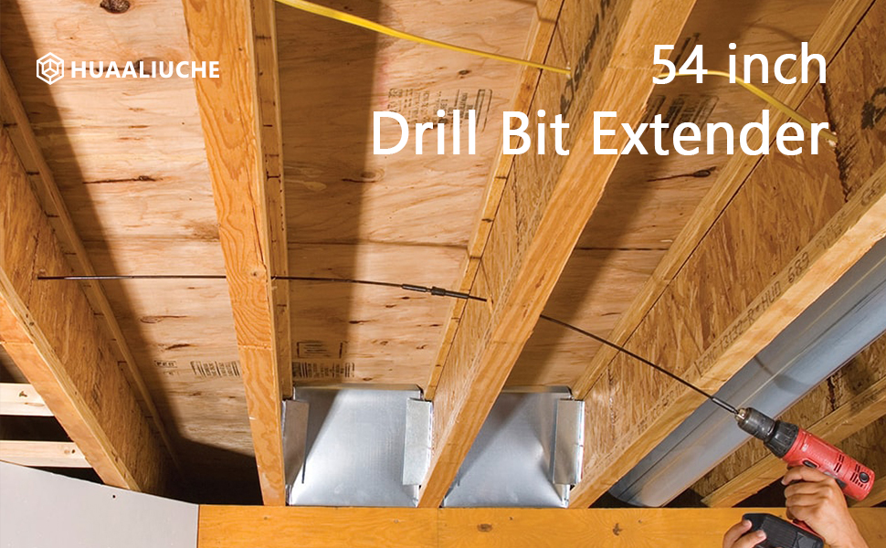 HUAALIUCHE Flex Bit 54-Inch Extension, Flex Shank Installer Drill Bit Extension, 1/4-Inch by 54-Inch with Wrench Key for Added Drill Bit Length for Drilling Between Walls or Several Rafters