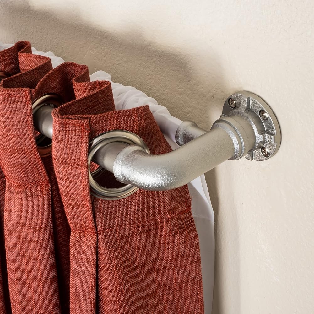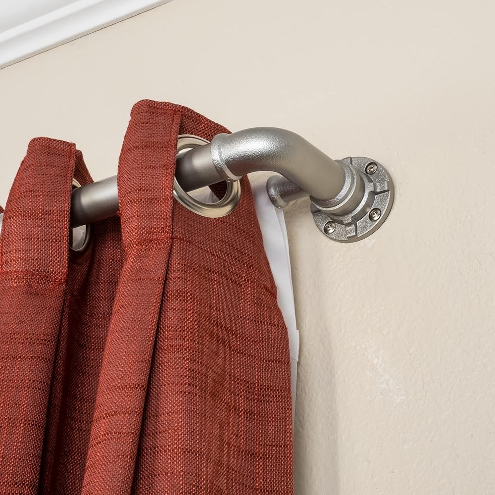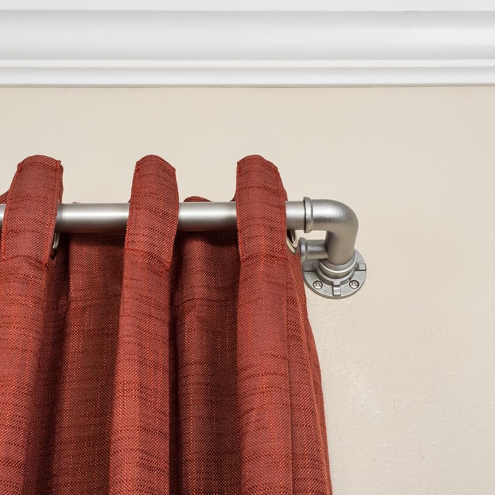 Update your decor with this faux cast iron pipe rod, evoking the industrial style so popular today. Robust and durable metal rods to support the weight of blackout panels. Wrap around design allows panels to touch wall and limit light entering room. Perfect for bedrooms, media rooms, and any room you would like darkened.