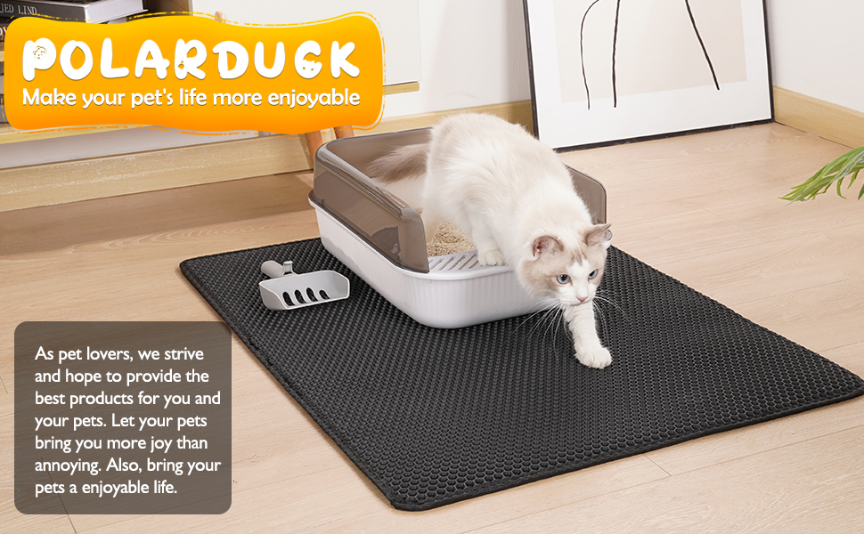 السلامة والضمان: بساط فضلات القطط Polarduck آمن للحيوانات الأليفة. ويأتي كل منتج من منتجات Polarduck مع ضمان لمدة عام من الشركة المصنعة وخدمة عملاء على مدار 24 ساعة.