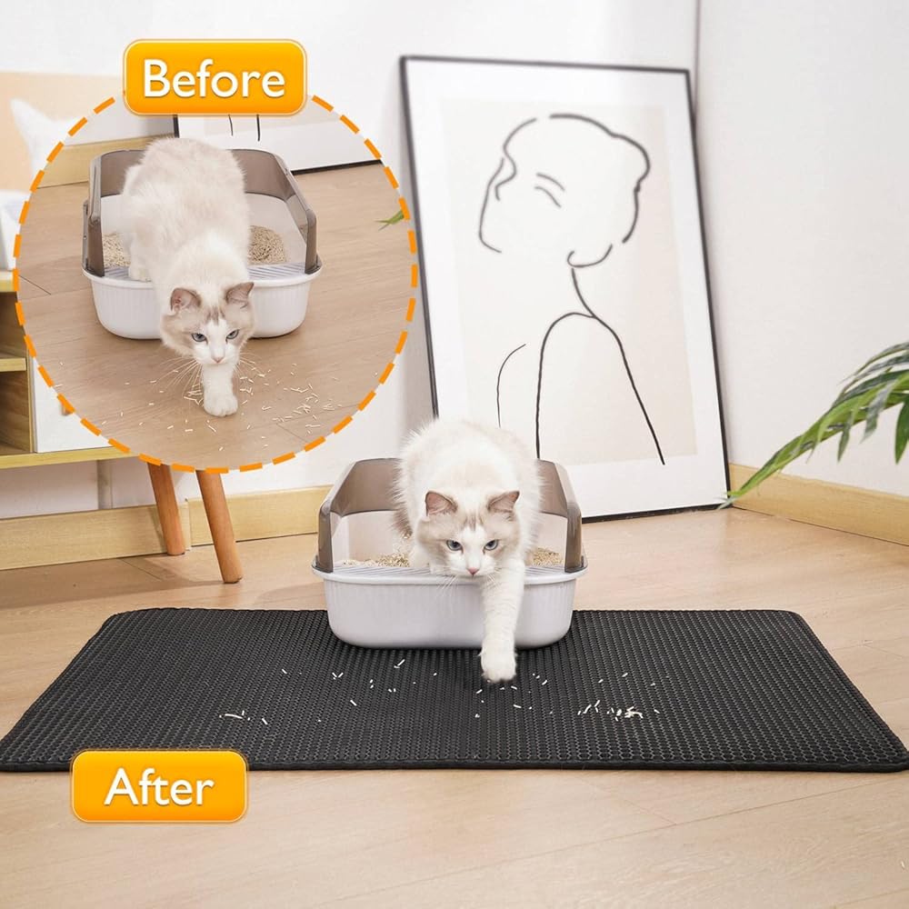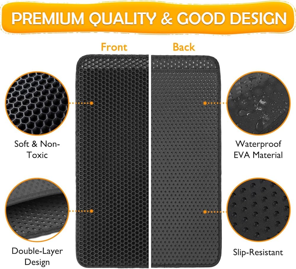 أفضل سجادة لفضلات القطط: تتميز سجادة صندوق الفضلات هذه بتصميم قرص العسل مزدوج الطبقات يساعد على احتجاز فضلات القطط المتناثرة، ولا مزيد من تنظيف الأرضية بشكل يومي. ما عليك سوى وضع بساط الفضلات أسفل صندوق الفضلات، فعندما تخرج قطتك من صندوق الفضلات، سيتم التقاط فضلات القطط الملتصقة بمخالبها داخل الفتحات الكبيرة الموجودة في الطبقة العليا من بساط القطط والحفاظ على نظافة الأرضية.