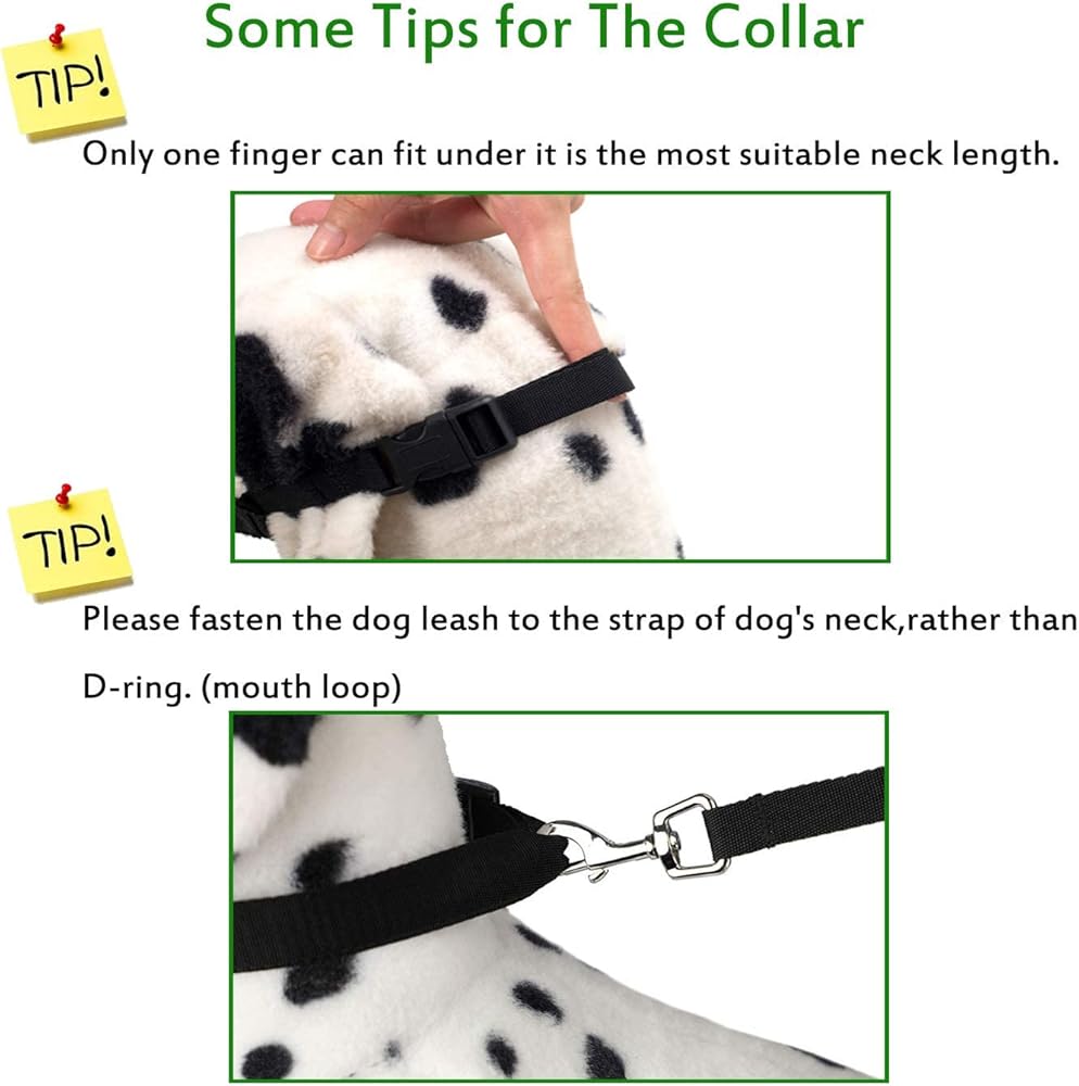 Please fasten the dog leash to the strap of dog's neck, rather than D-ring(mouth loop).
