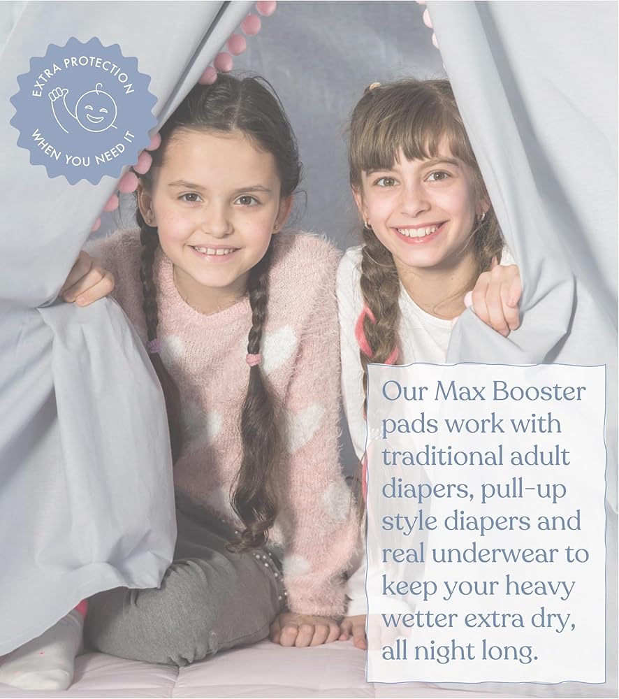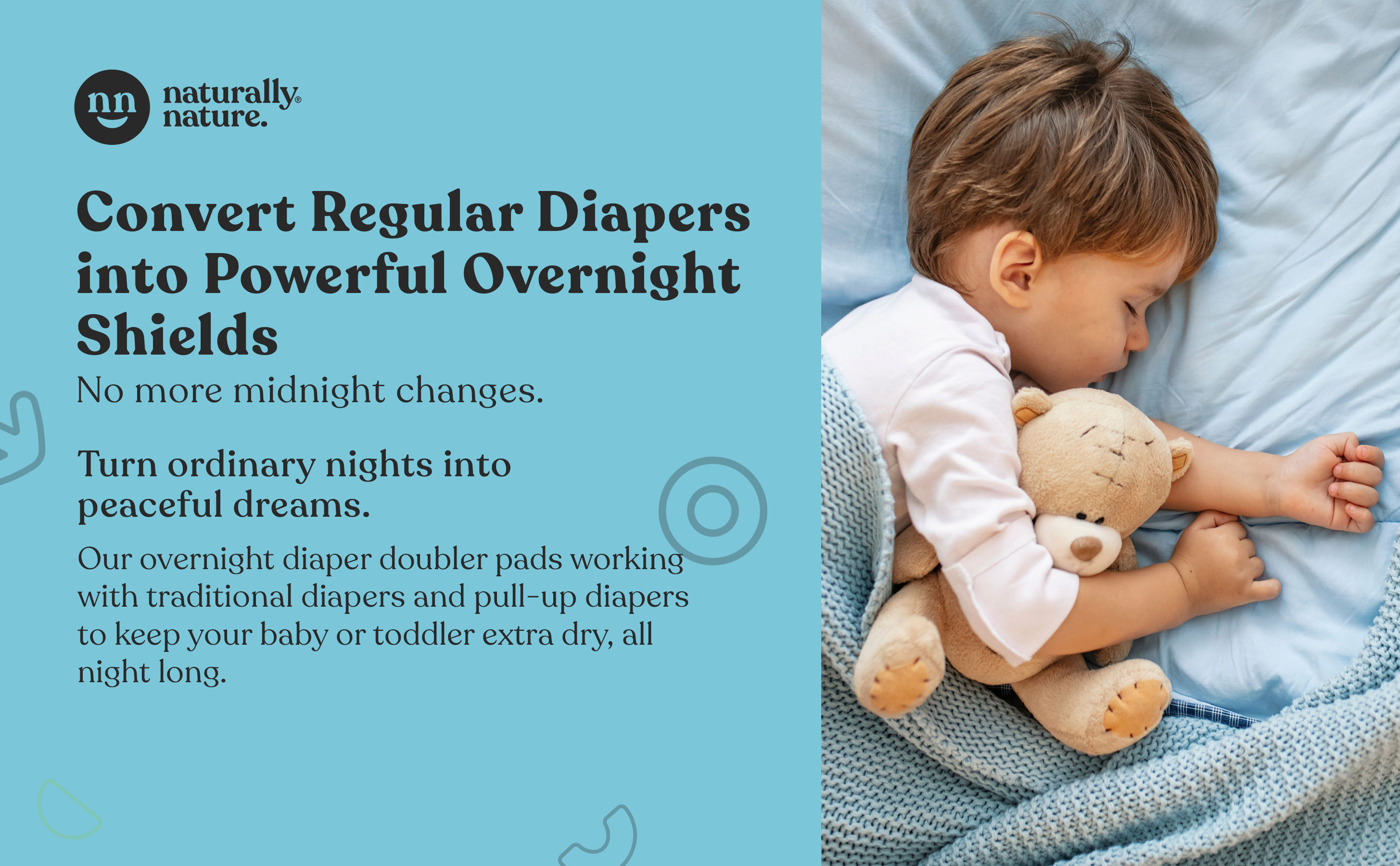 Super-Duper Absorbent Perfect for little ones prone to accidents, our potty. training inserts can be used for overnight. They increase your diaper's absorbency by 50%! Place in your toddler's nighttime diapers and rest assured they'll wake up with no leaks.
