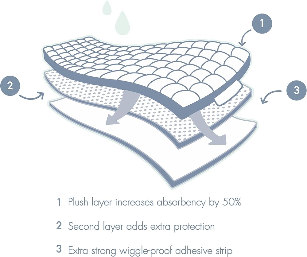 Wiggle-Proof Adhesive Strip: We created our booster pad liners with a heavy-duty adhesive — so even the most active babies are protected from leaks and accidents.