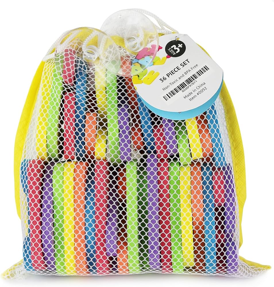 Easy to Take on the Go: This Click N' Play 36 piece foam bath set is the perfect toy to bring in the car, to a grandparent's house, or on a trip! Simply grab the mesh organizer and go.