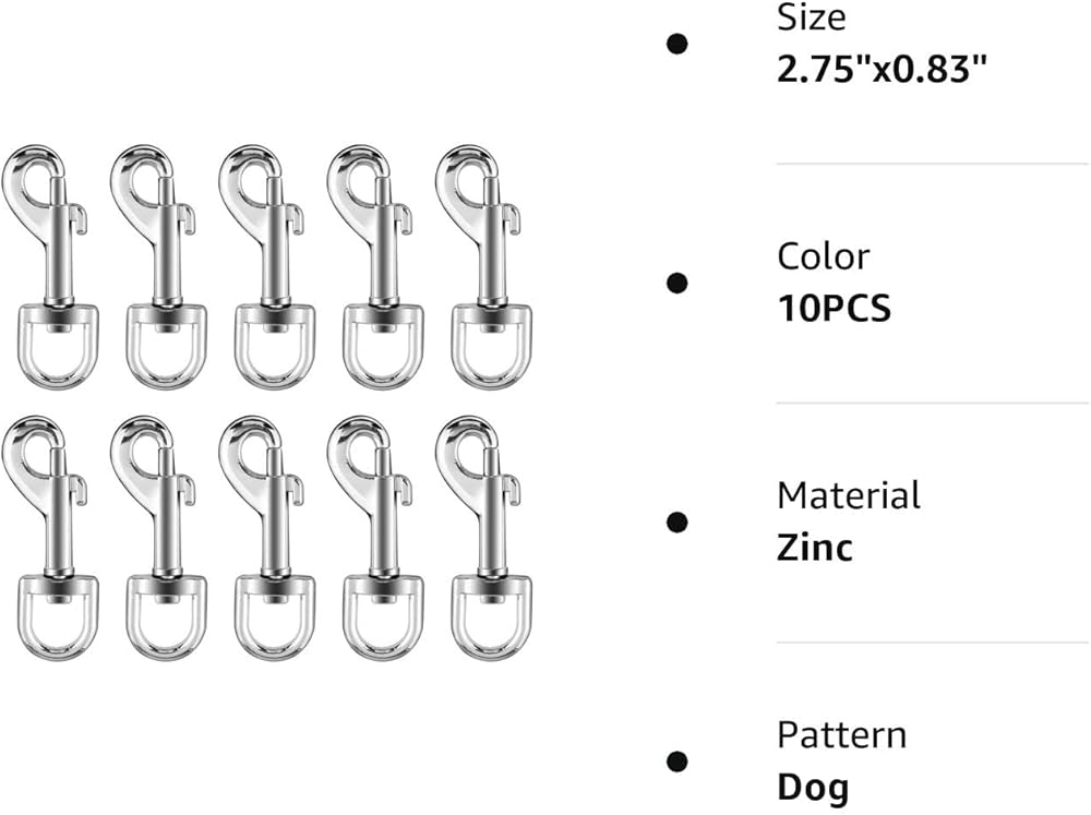 10/20Pcs Snap Hooks Heavy Duty 2.75"x0.83" Swivel Snap Hooks with Spring Pet Buckle Multipurpose Dog Leashes Key Chain for Linking Pet Leash & Collar (10PCS)