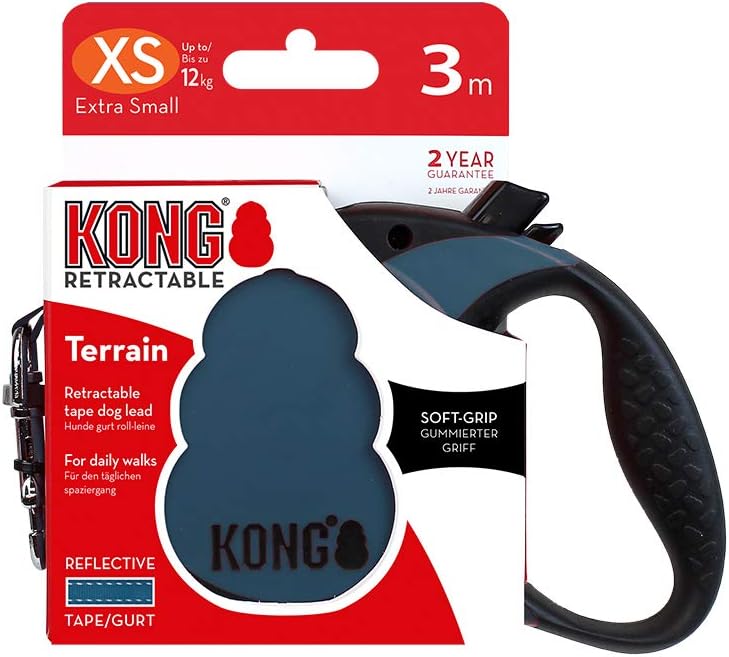 The KONG Terrain is perfect for everyday use around your favorite walking trail. Each size features a soft grip handle, color coordinated belt with reflective stitching, and an intuitive brake + lock mechanism that works with you and your dog's natural walking motions. Like all KONG products, you can depend on these retractable leashes for durability and strength walk after walk.