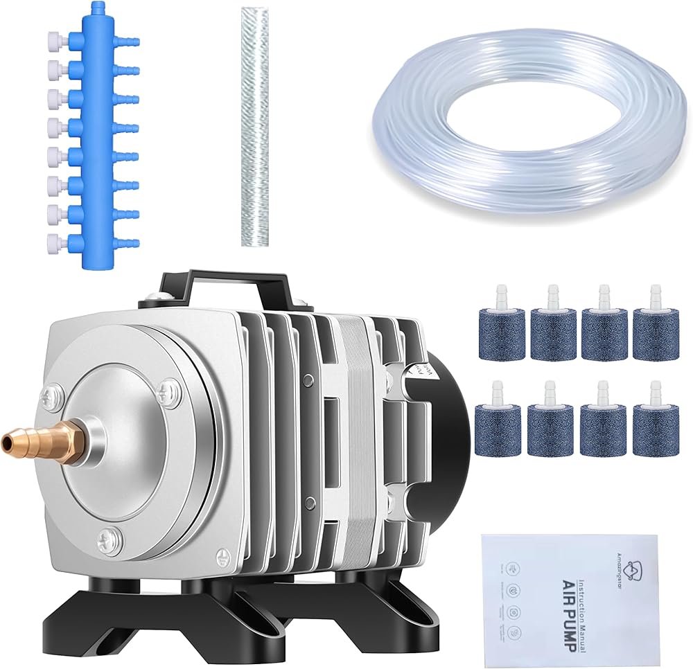 Great Output: Powerful electromagnetic motor pushes 635 gallons per hour to deliver lots of airflow; 6 outlets are ideal for running several waterfarms or multiple air stones at one time