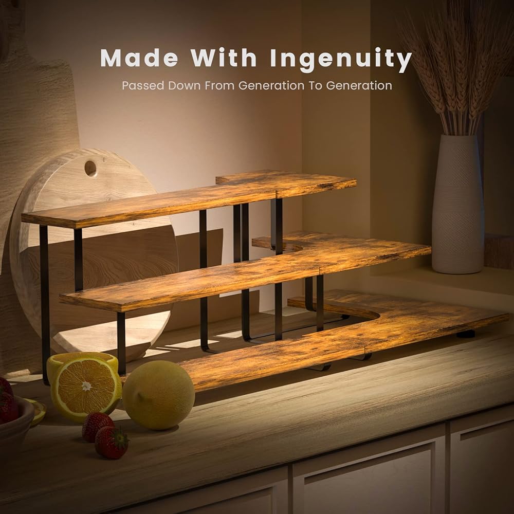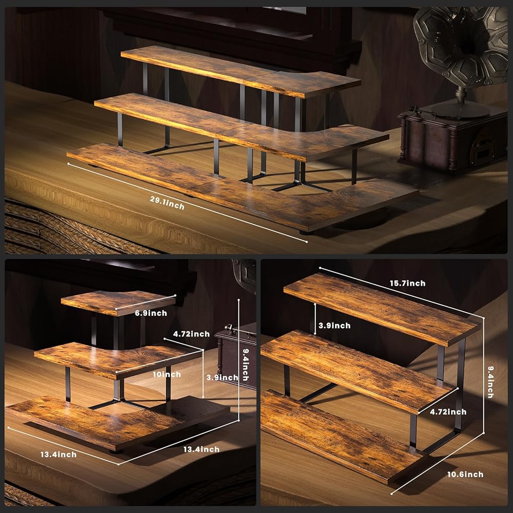 Display Stand Perfect Size: The right-angle Wooden Display Stand is uniquely designed, easy to assemble and splice, the assembled size is 'L10.61*W15.7*H9.41' inches, and the corner and right angle splicing width is 29.1 inches, if you need Larger storage space, you can add more for assembly and splicing