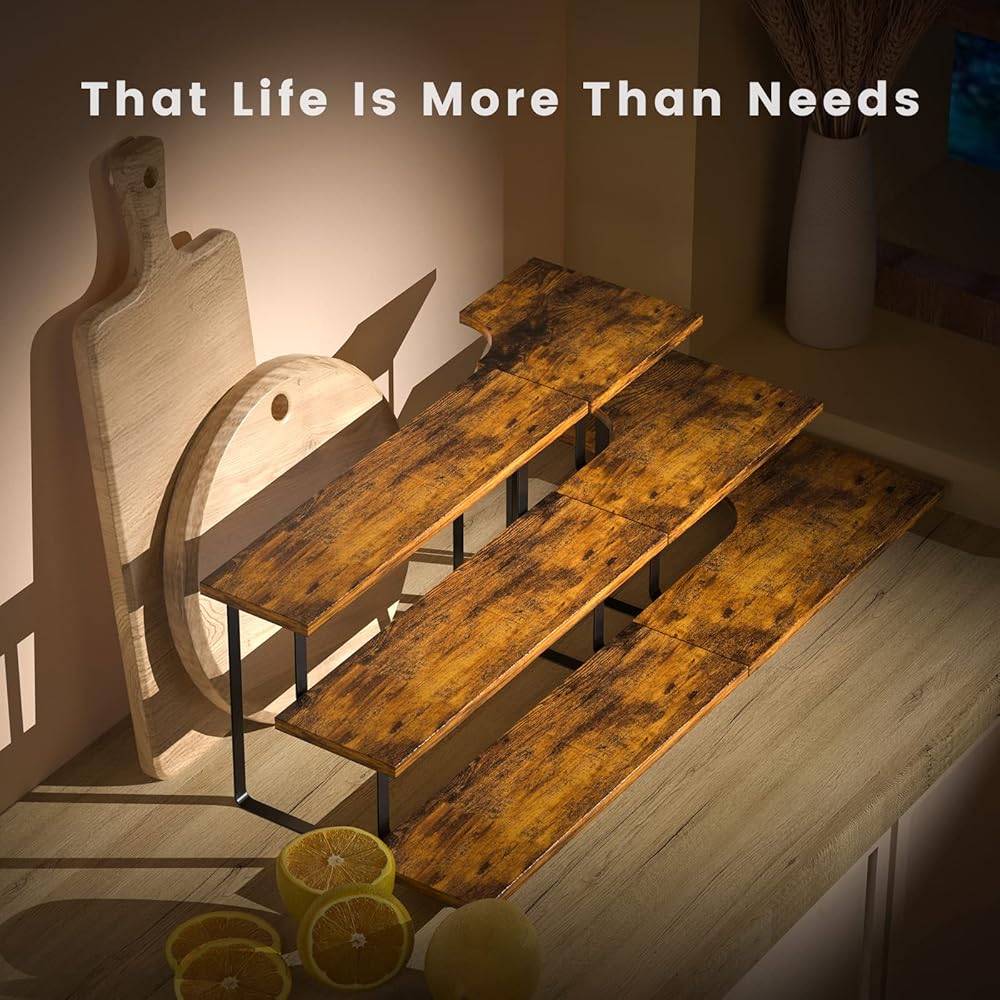 Display Stand is Widely Used:3 tier serving tray display stand is made of high quality environmental protection wood + alloy steel S304L frame, simple structure, beautiful and sturdy, suitable for your kitchen, party, desk, display cabinet, dressing table. wooden display stand can be used to display and store your store's goods, such as nail polish, perfume, cakes, dolls, cakes, spices, etc.
