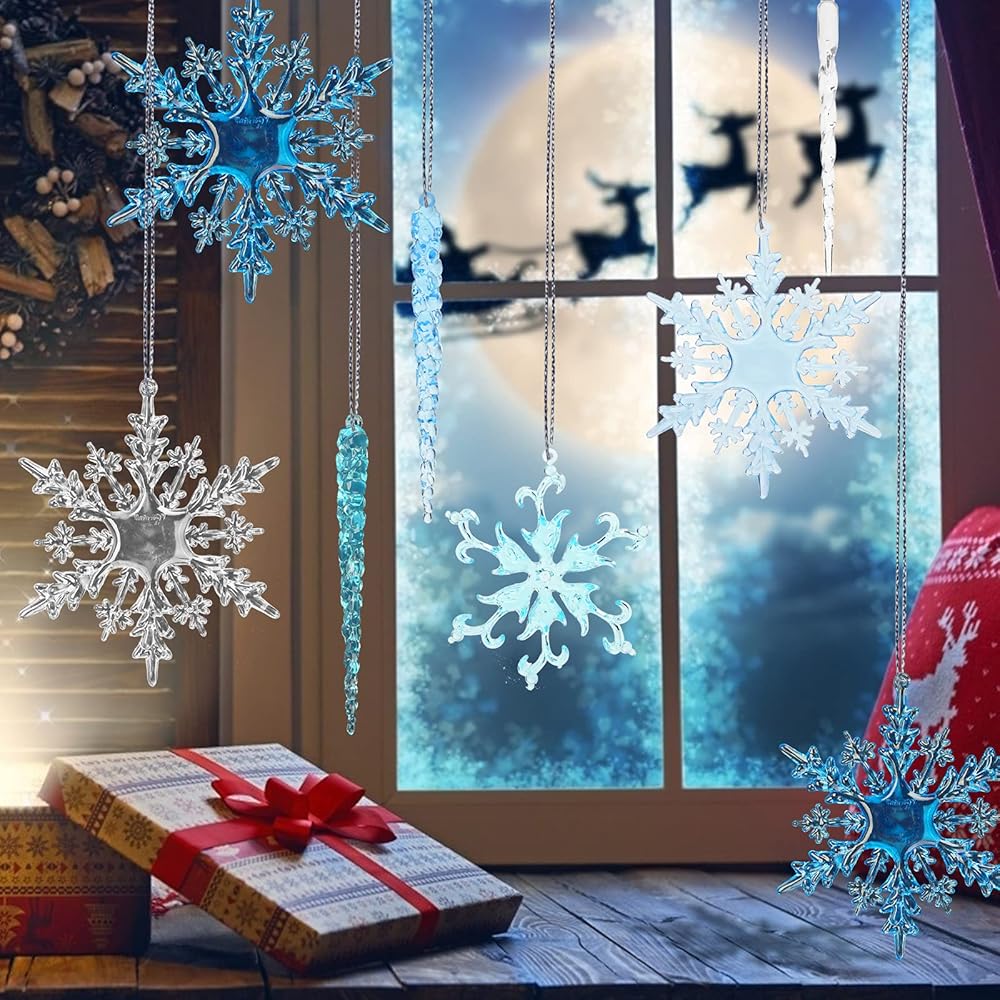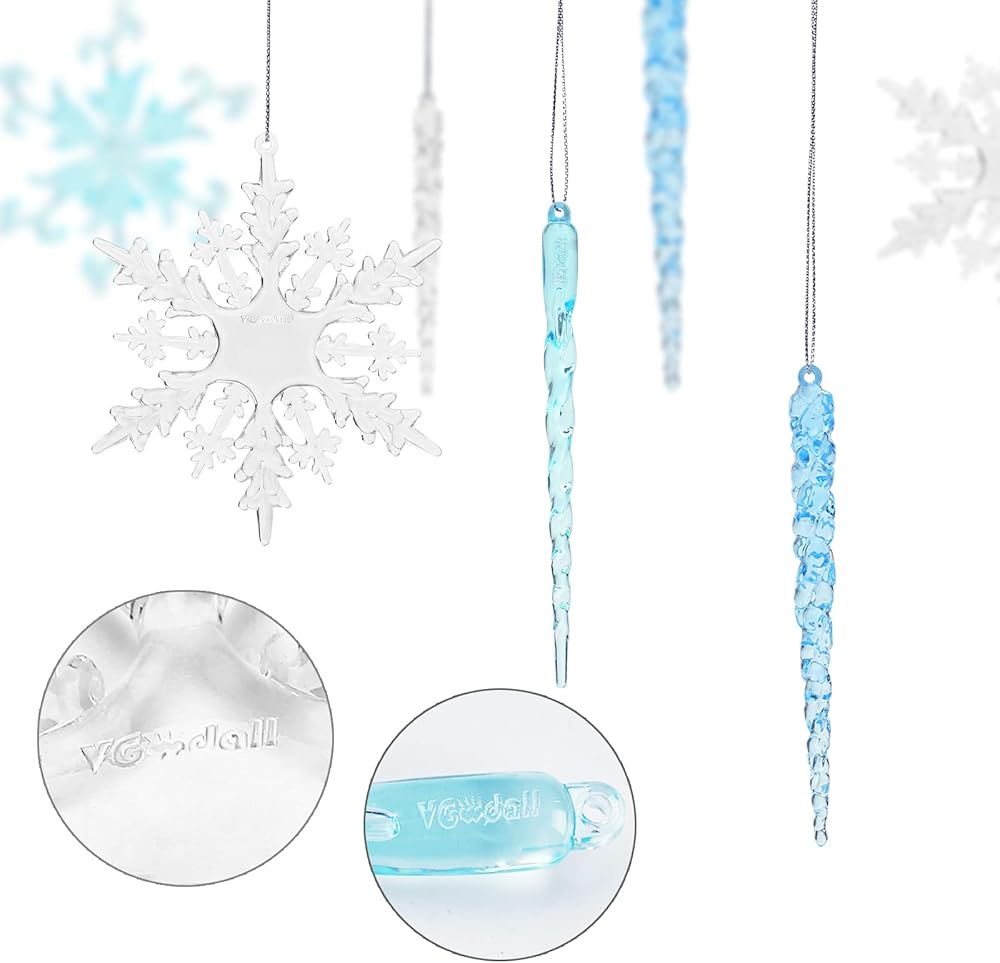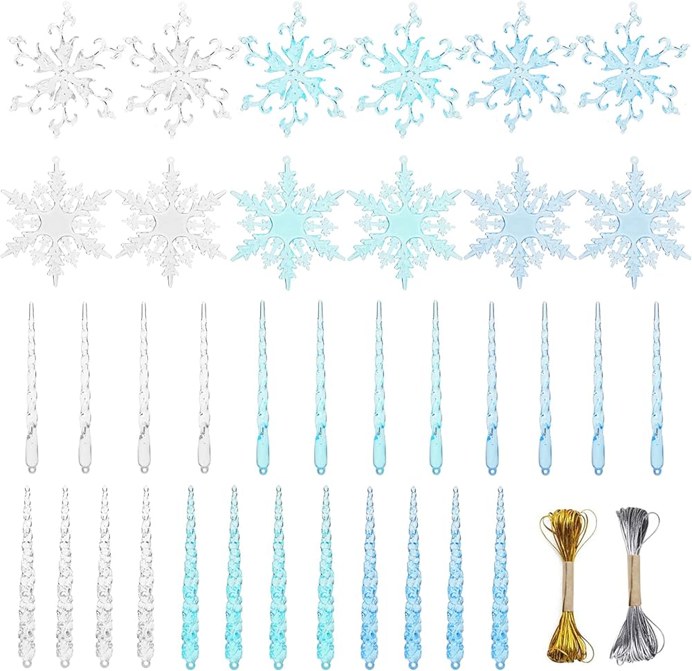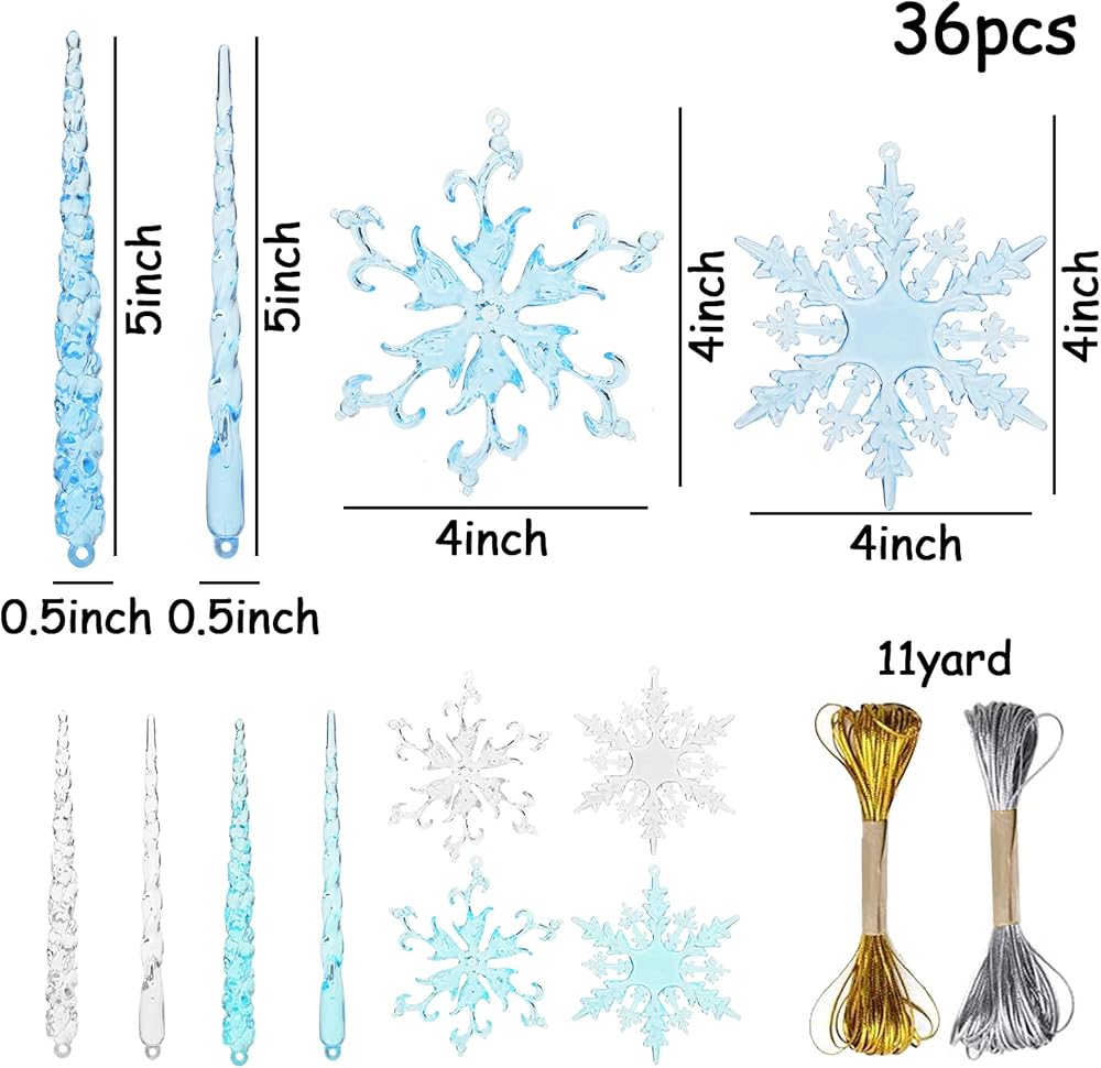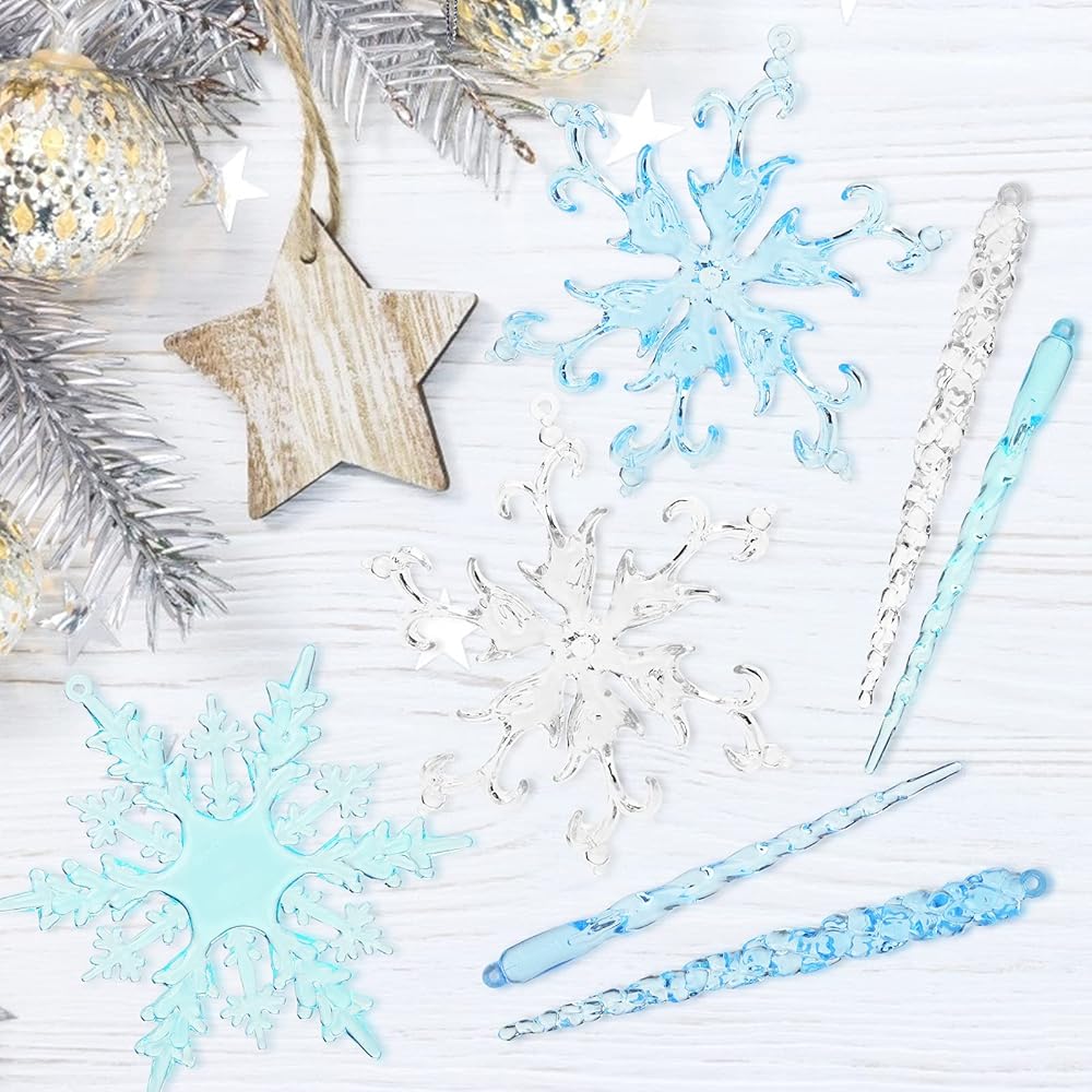 Widely Used - Our acrylic snowflaksand icicles are suitable for winter wedding decoration, frozen theme birthday party, Christmas tree, showcase window, outdoor, etc. Our acrylic Christmas decorations aslo can be used as holiday gift, crafts project, wreath making and other home decorations.