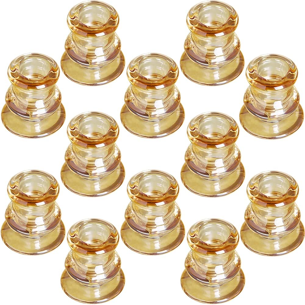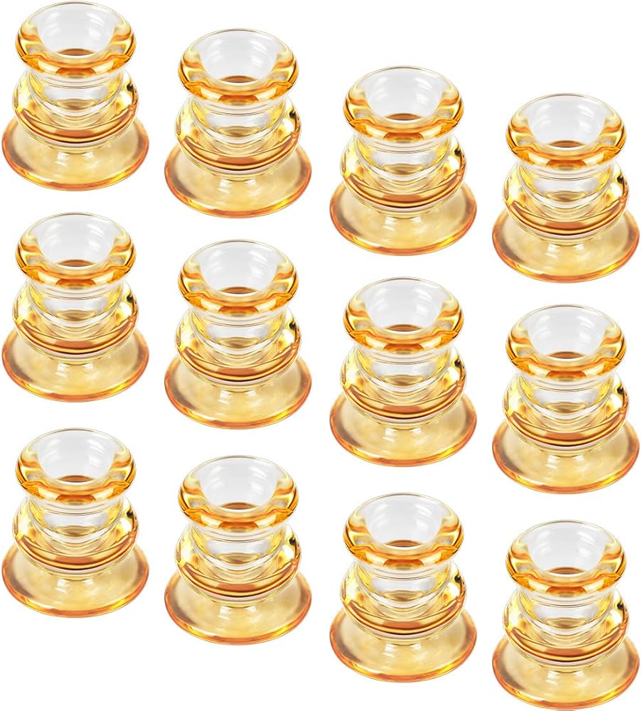 One package include 2 glass candlestick holder. Every one tall 2.44 Inch(6.2cm) and diameter 2.03 Inch(5.3cm), can holds standard 1 inch taper candles with a 0.9 inch base.