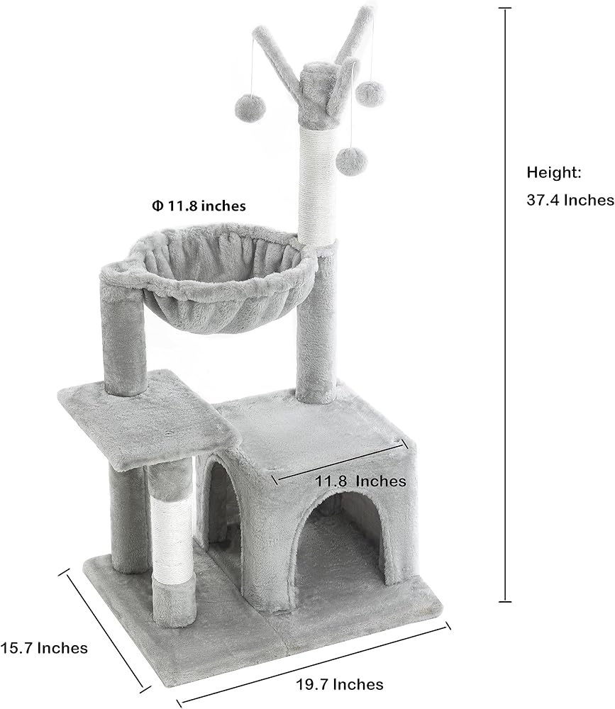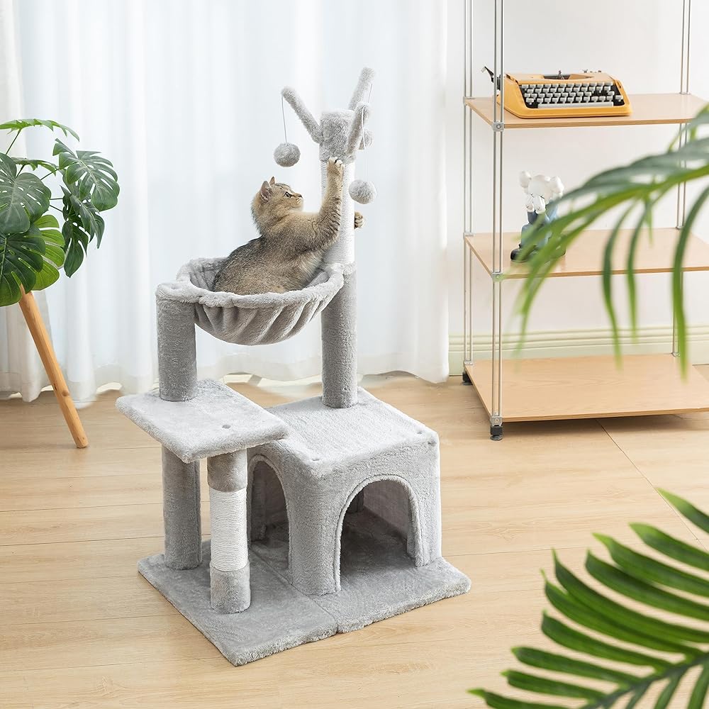 Are you searching for a cat tree that will keep your indoor feline friend entertained and relaxed? Look no further than Pesofer's small cat tree! This tree has everything your cat needs to play, nap and relax. It features a cozy round hammock where your cat can curl up and take a nap, or just enjoy the comfort of being off the ground. The tree also comes with three dangling balls that your cat can play with, and which will keep them active and entertained throughout the day. Looking for a small cat tree that can accommodate your cat's needs? Pesofer's cat tree is a great option! With a cozy round hammock, your cat can take a nap or relax in comfort. The tree also has hanging playing ticks that can keep your cat entertained and active. This cat tree is ideal for indoor cats and is a perfect addition to any home. Your feline friends will surely love it! Pesofer's small cat tree is perfect for indoor cats who want to play and relax. The tree features a cozy round hammock for napping, and hanging playing ticks to keep your cat entertained. This cat tree is a great addition to any home with cats, and is sure to provide hours of fun and relaxation for your feline friends. But that's not all - this amazing cat tree also comes with a small house! Your cat can retreat to the little house when they want to hide away from the world, or when they just want some privacy. The house provides a cozy and secure space where your cat can feel safe and comfortable. Overall, Pesofer's small cat tree is a great addition to any home with cats. It provides hours of fun and relaxation for your feline friends, and is sure to keep them entertained and comfortable. So why wait? Get the Pesofer's small cat tree today, and give your cat the gift of comfort and entertainment!