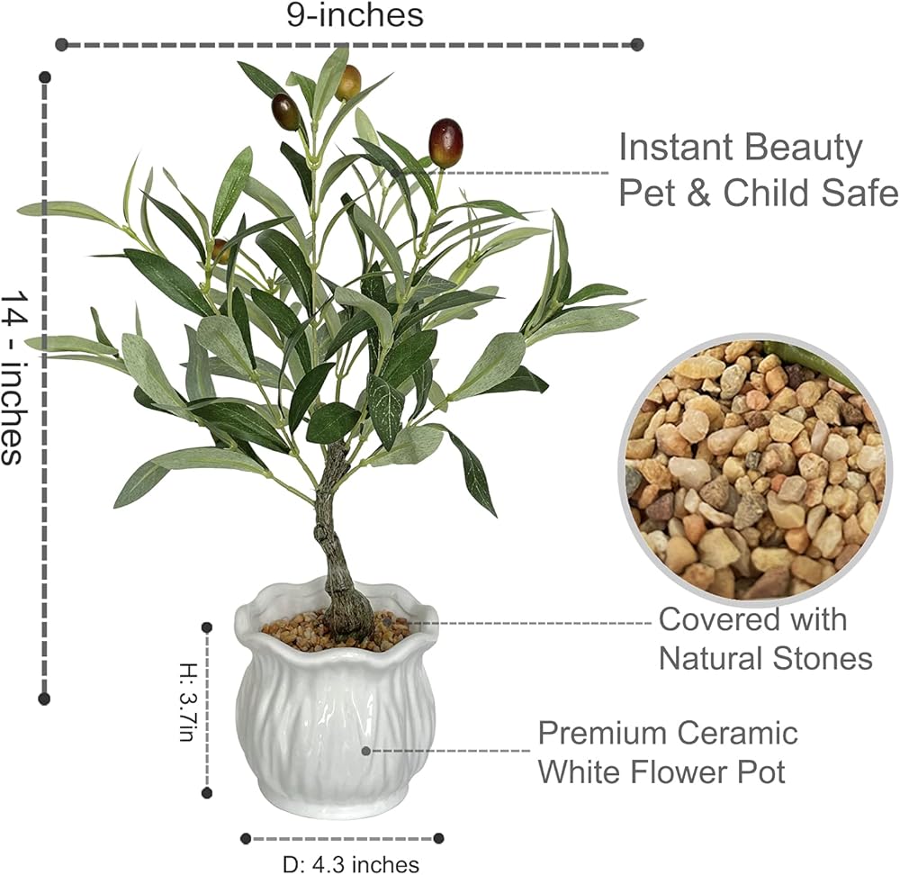 BESAMENATURE Artificial Olive Tree, Desktop Faux Fruit Tree for Home Office Decoration, 14" Tall