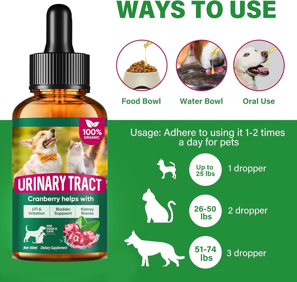 【Urinary Tract Infection Treatment】:The natural cleaning of urinary tract by drops will help to maintain normal urine flow and comfort, provide powerful care for your pet, and make it grow healthier and safer.