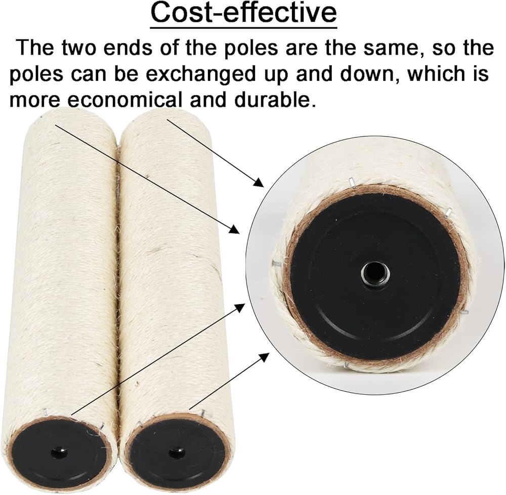 The two ends of the cat scratching post are the same, so the posts can be exchanged up and down, which is more economical and durable.