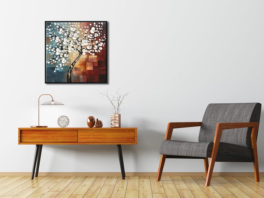 • One piece stretched and framed perfect white flowers canvas oil paintings ready to hang for home decorations wall decor, each panel has a black hook already mounted on the wooden bar for easy hanging out of box.