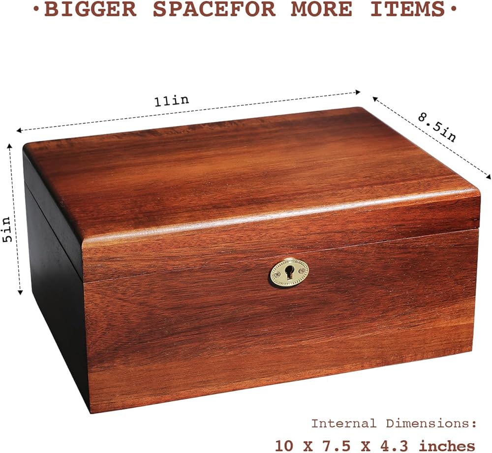 【Safety&Large Space】The wood box has a lock and key system design to protect your precious personal items, from jewelry to letters, everything can be stored safely. Wooden boxes add a sophisticated, modern feel to your interior home decor. In addition, the key comes with an exquisite drawstring bag for convenient storage.