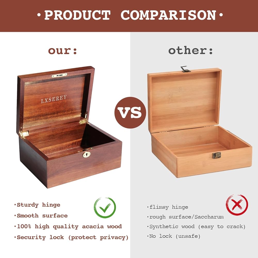 【Thoughtful Gift】 The LXSEREY wooden boxes is not only a practical storage container, but also a unique gift. Whether it is given to relatives or friends, it can convey your deep emotions and care. At the same time, we will provide 24/7 after-sales customer service. If you have any questions, please contact us at any time.