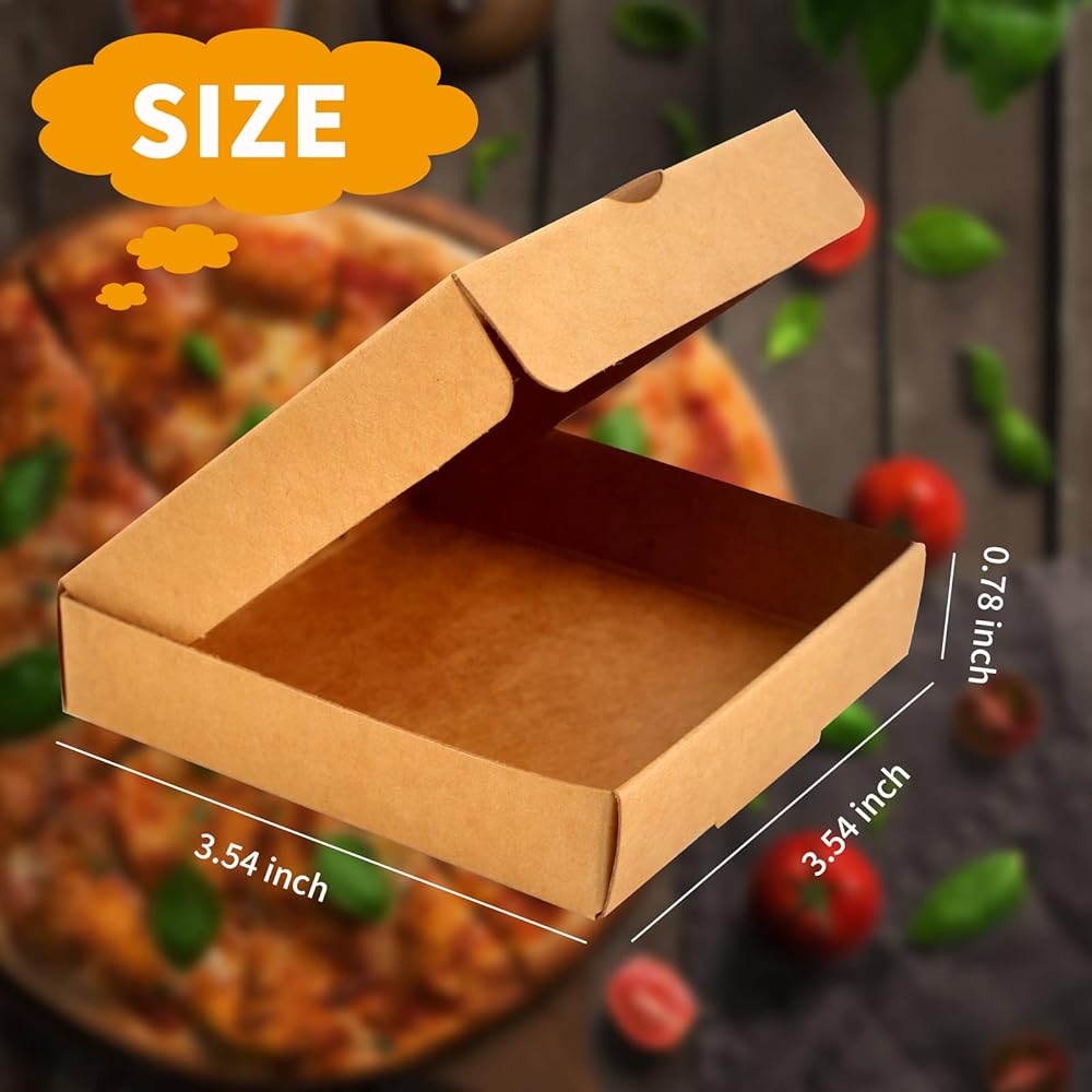 PERFECT SIZE: 3.54 x 3.54 x 0.78 inches, these Square Cardboard Mini Pizza Box are the perfect size, decorate this mini pizza with stickers, labels or markers Box of party favors