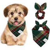 Matching Bandana and Scrunchie Set: It's full of love when your pets is wearing the dog bandanas christmas and you are wearing the bow scrunchies. When traveling, sleeping, taking photos or daily walking, adorable dog bandana and plaid scrunchie is a pretty accessories. The scrunchie can be worn as a wrist accessory and hold your hair. Beautiful dog drool bibs and bow scrunchie with green and blue tartan pattern, it's nice photo props for holiday.