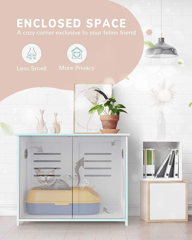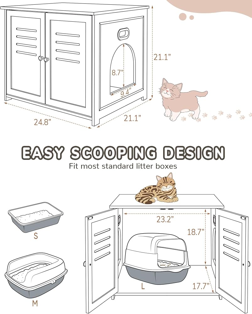 【Convenient & Private】With a 9.4”×8.7” side opening, this cat furniture is more convenient for the cat to enter and is also well-ventilated to avoid smelling. Meanwhile, your pet will greatly appreciate the privacy when the front door is closed. The large door design also provides easy access to the litter box or for cleaning purposes.