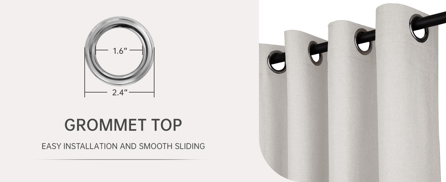 Ready Made Curtain Panels: Each Set includes 2 Curtain Panels, each panel measuring 50" width x 84" length with 8 Sliver Grommets, each grommet is 1.6" inner diameter, fits standard size curtains rod, look great when you hang on coordinating metal rod, slides smoothly back and forth.
