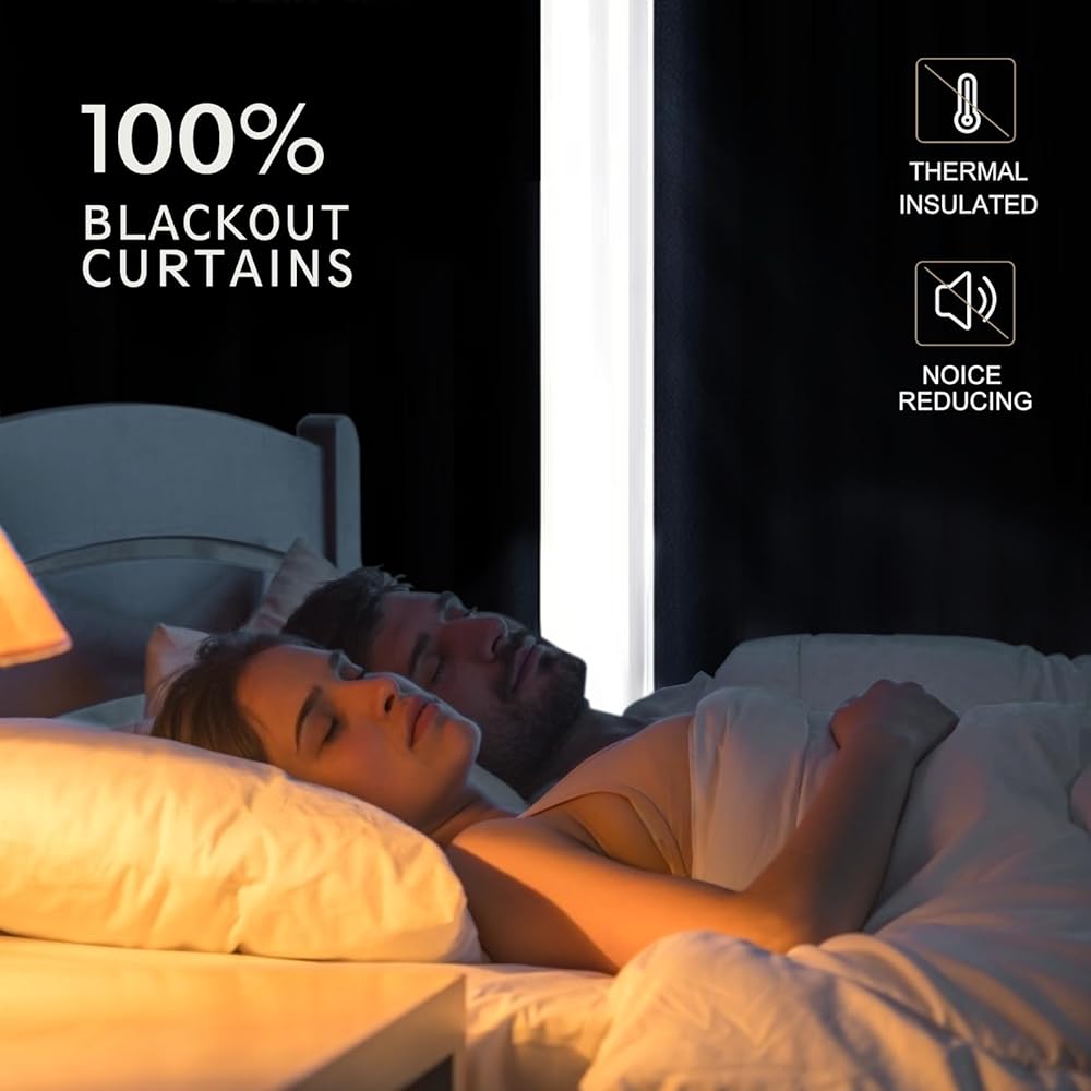 100% Total Blackout Curains: These total blackout curtains from ROSE HOME FASHION use the fabric with full shading coating on the back, can completely keep out the SUNLIGHT and UV RAY, offer you a real dark environment, perfect for baby room and night shift worker, providing entire privacy in your place.