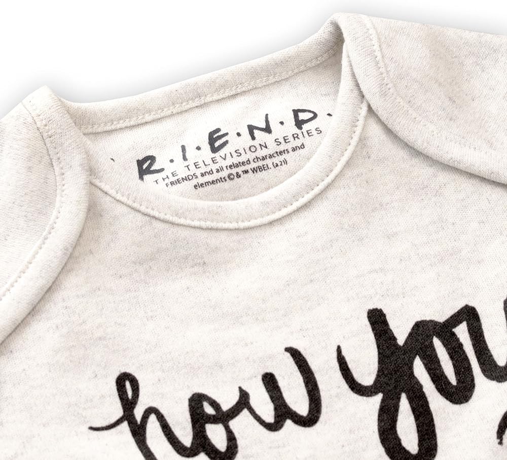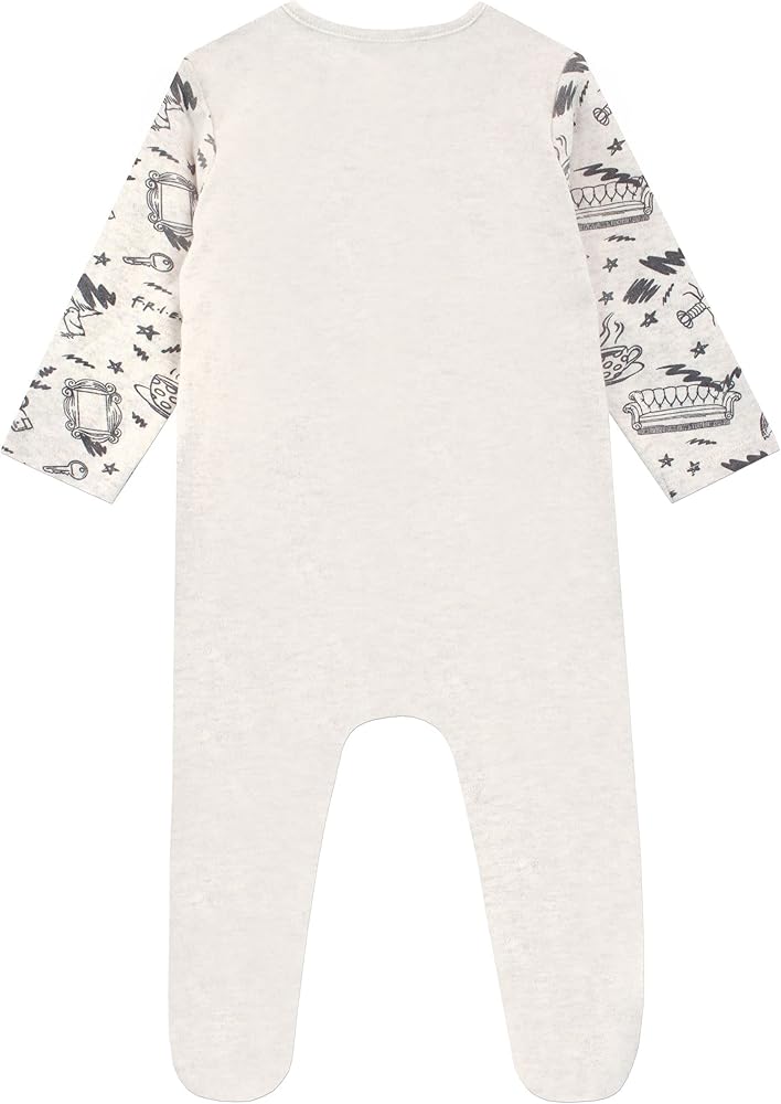 Officially licensed Friends merchandise. A cream footie for babies, with imagery from Friends