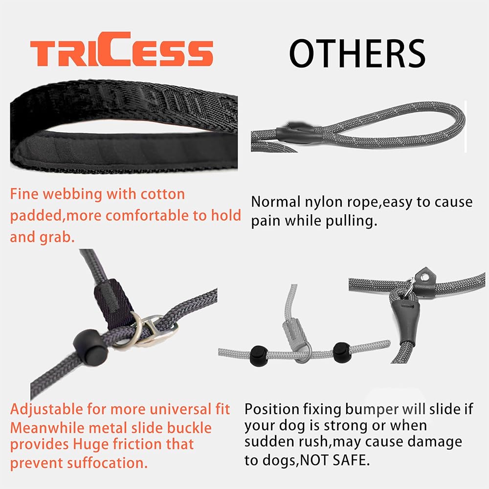 【Guaranteed Heavy Duty and DURABLE】Built with heavy-duty thick cord, the rest part of its main body takes strong&supple webbing, ever worry about broken and twisted damage. Overall, the Fine Webbing TRAINING LEASH serves as an essential tool for dog owners who prioritize safety, control, and effective training methods. Its durable construction combined with adjustable features make it suitable for different breeds and sizes of dogs. Whether you are teaching basic commands or working on advanced obedience skills, this leash proves to be a reliable companion throughout your dog's training journey.