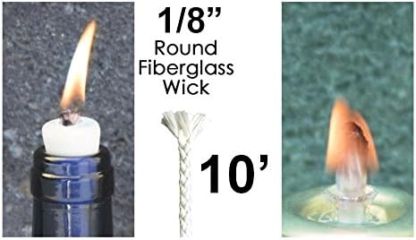 1/8" Inch By 10' Foot Round Fiberglass Wick. Perfect for Torches, wine bottle oil candles, and Kerosene Lanterns. These wicks are made in the USA!!! (18)