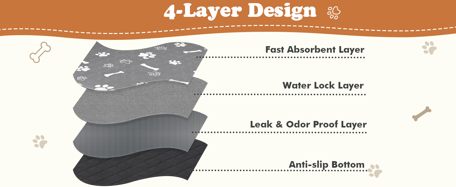🐕Four-Layered Construction🐕 Our Petbank dog pee pads features a soft and comfortable top layer, highly absorbent core layer, waterproof barrier layer, and non-slip bottom layer for reliable protection and added stability.