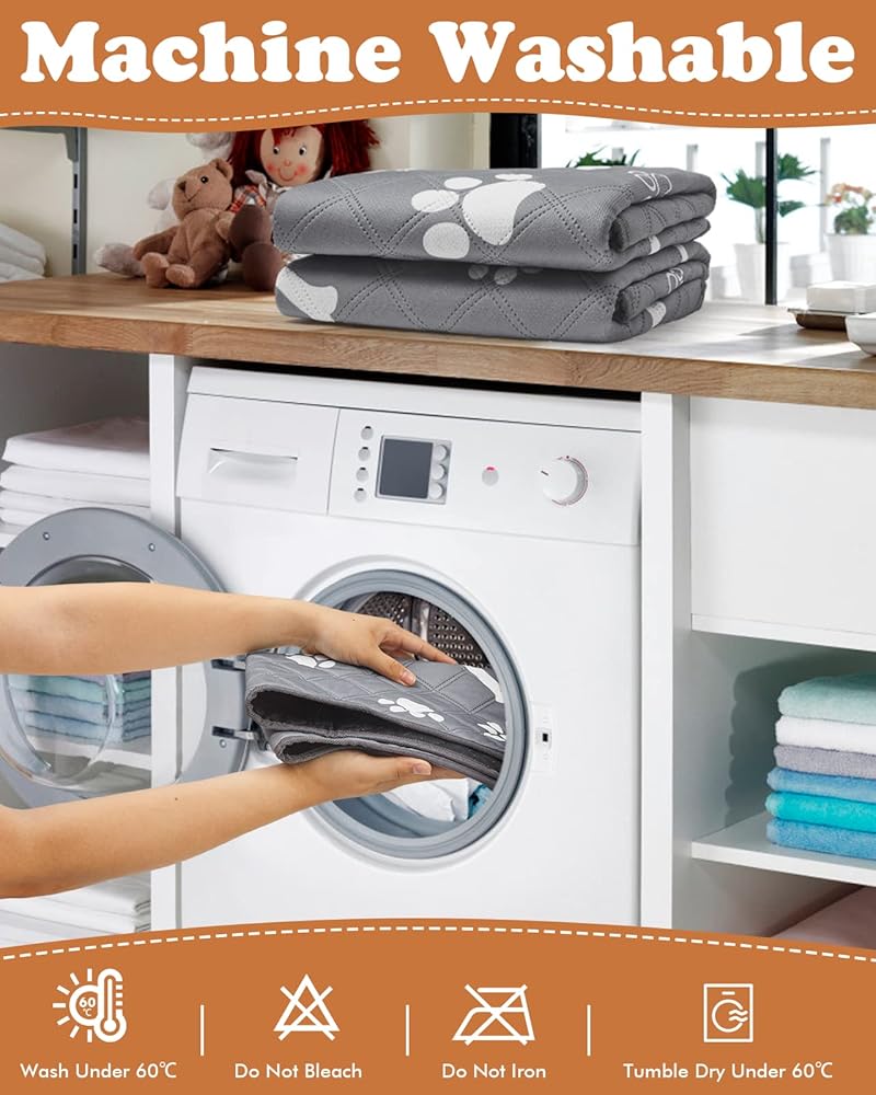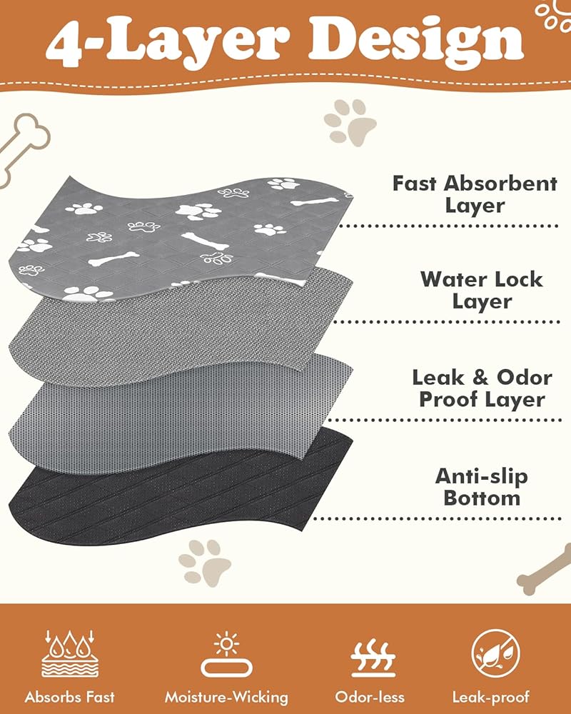 🐕Reliable Protection🐕 These reusable pee pads for dogs protect your floors, carpets, sofas, and beds from unexpected accidents and leaks, saving you time and hassle in cleaning up after your pets. The dog mat also features a non-slip bottom, with which the pad won't sliding around when in use, providing added stability and safety for your pet.