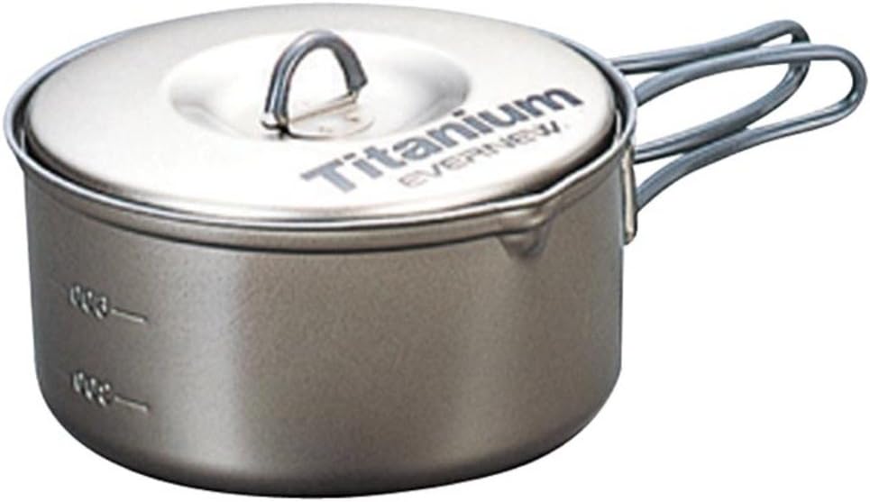 Evernew Non-Stick Titanium Pot is made of titanium, with silicone-covered handles and silicon-ceramic non-stick coating. Includes nylon stuff sack.Winner of the 2005 Editors Choice Award. Also available the larger 2.6L version with two handlesEvernew ECA425 Model # Capacity Tot. Weight Dimensions ECA421 0.63qt (0.6L) 4.2 oz (120g.) 4.88x2.05 in (12.4x5.2 cm) ECA422 0.95qt (0.9L) 4.9 oz.(140g.) 5.35x2.52 in (13.6x6.4 cm) ECA423 1.37qt (1.3L) 6 oz (170g.) 5.91x3.03 in (15x7.7 cm) ECA424 2qt (1.9L) 8.8 oz (250g.) 6.5x3.54 in (16.5x9 cm)