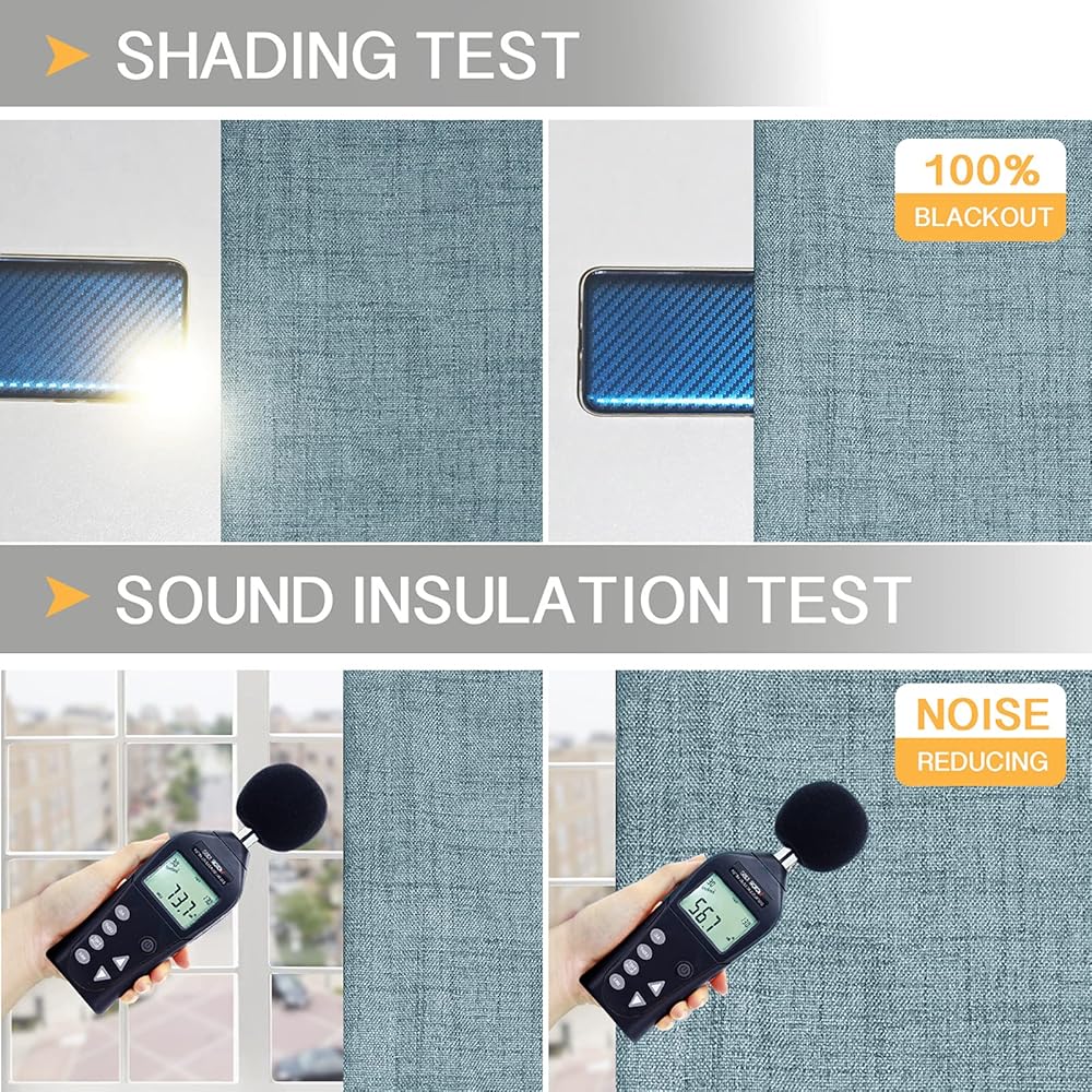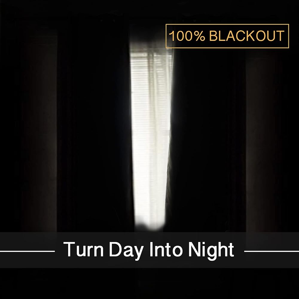 100% Blackout: Double Layers Design, This black out curtains completely keep out the 100% SUNLIGHT and UV RAY. Offer you a real dark environment, perfect for baby room and night shift worker. Absolute privacy with all your indoor activity.
