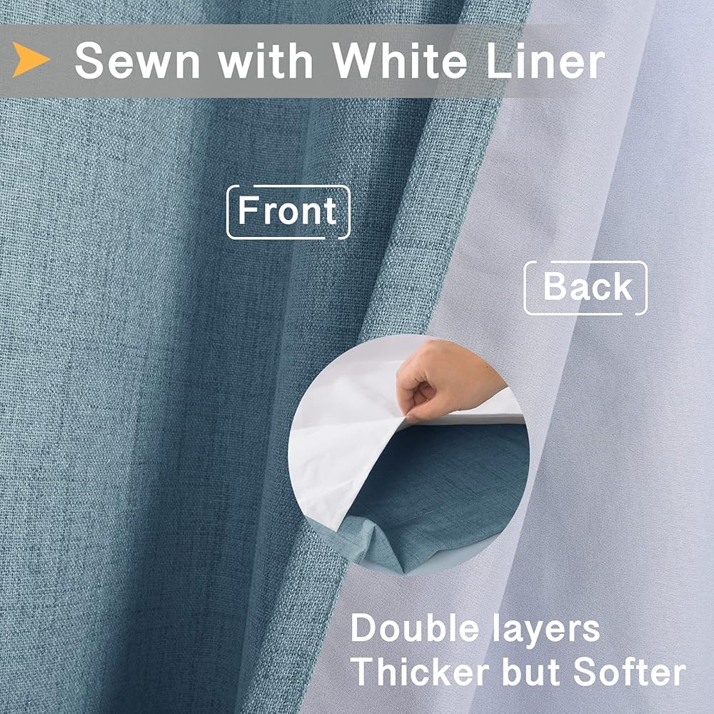 Rose Home Fashion 100% Blackout Curtains for Bedroom Linen Textured Look Drapes with Blackout Liner, Curtains for Living Room/Farmhouse, Burlap Curtains-Set of 2 Panels (50x108 Blue)