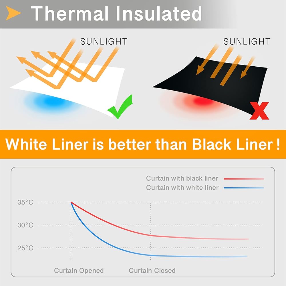 Energy Efficient: Scientific experiments have shown that the white liner reflect light source compared to the black lining, minimize heating & cooling cost by preventing sunlight & draft from getting in.