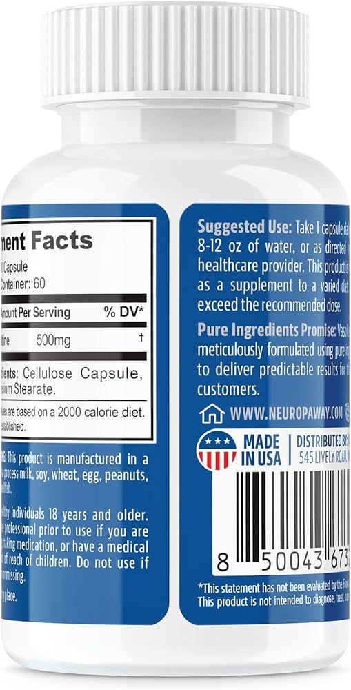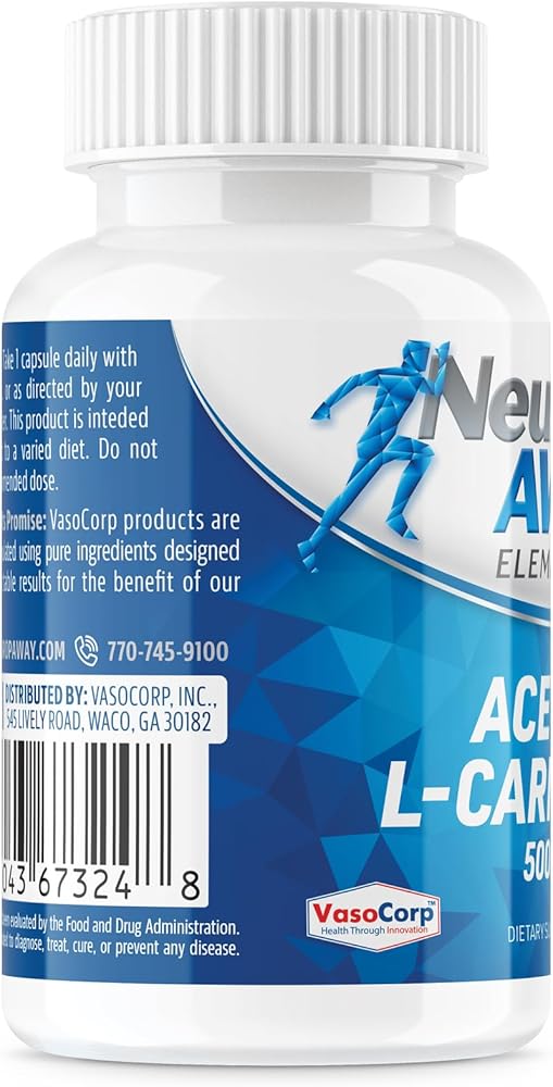 NeuropAWAY Elements Acetyl L-Carnitine 500mg 60ct Capsules (60 500mg Capsules Per Bottle) Veggie Caps Third Party Tested Made in USA