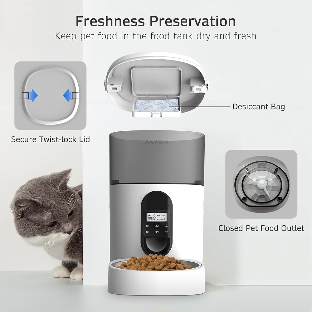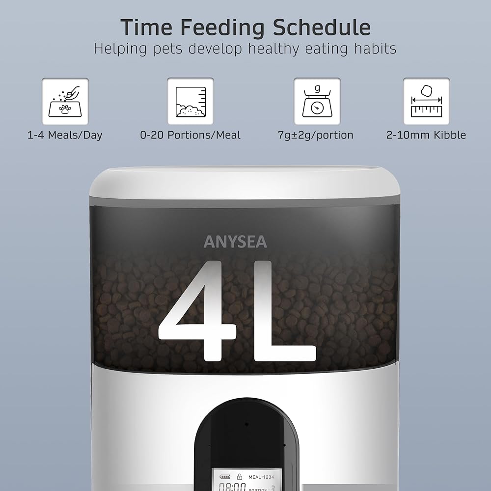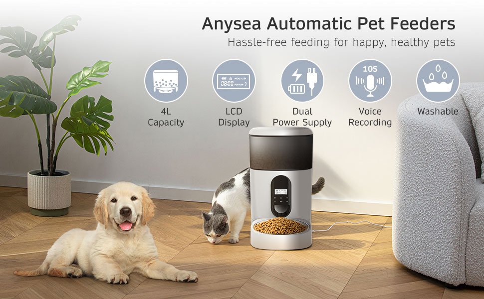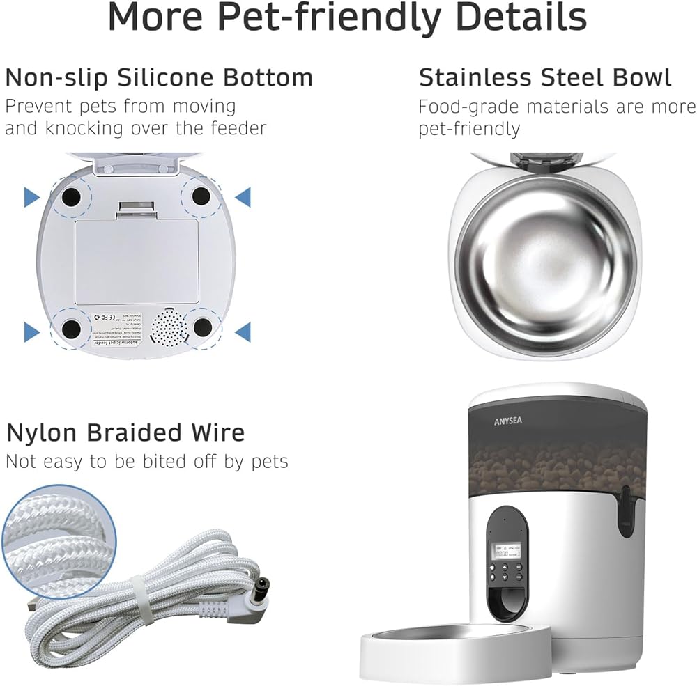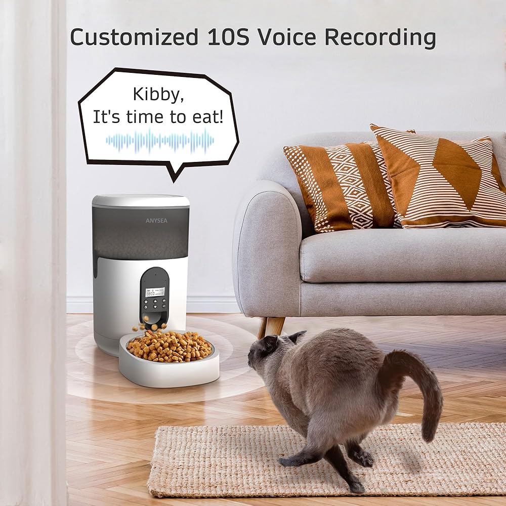 Voice Recorded Meal Call: Anysea Pet Feeder gives you the added benefit of a 10-second audio recording clip that can be played during meals, providing a comfortable and familiar experience for your beloved pet and ensuring a relaxed and enjoyable dining atmosphere for your furry friend.